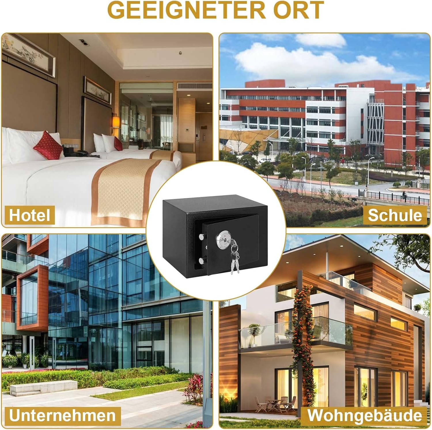 - [Anwendung]In Safes wird Bargeld in Geschäften, Restaurants, Bars,Hotels und kleinen Unternehmen aufbewahrt. Viele Menschen verwenden dieses Modell gerne als Safe für zu Hause oder im Büro.