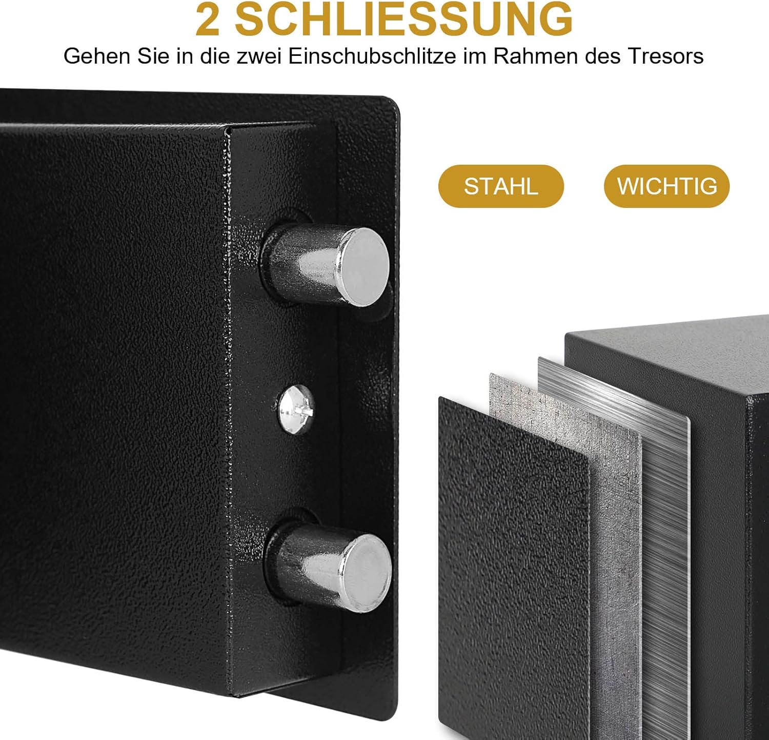 - [Massiver Stahl]Safe tresor er besteht aus einem Hochleistungs-Doppelbolzen-Wurfsystem aus Chromstahl aus dickem Stahl, sparbox Kratzer zu vermeiden,Möbeltresor langlebig und stabil für eine lange Lebensdauer.