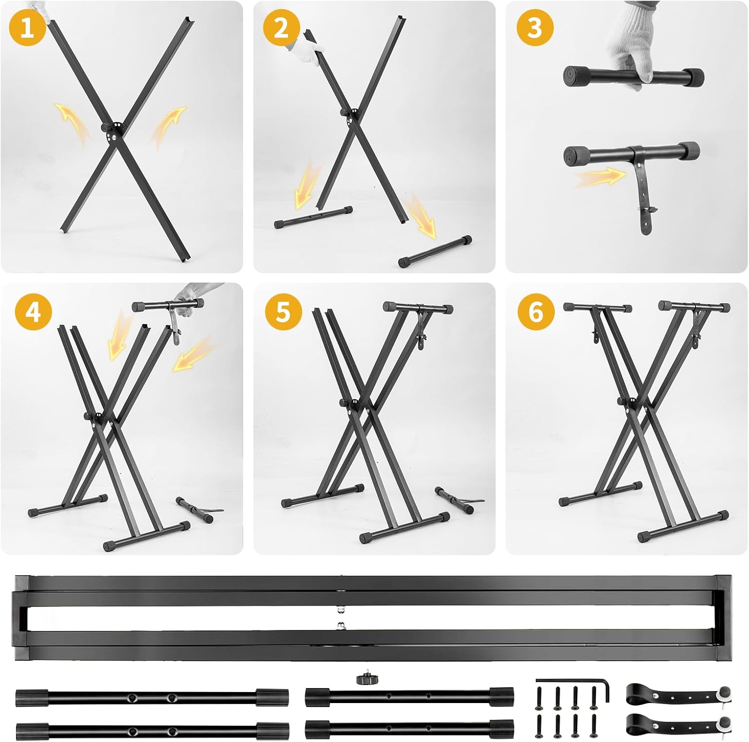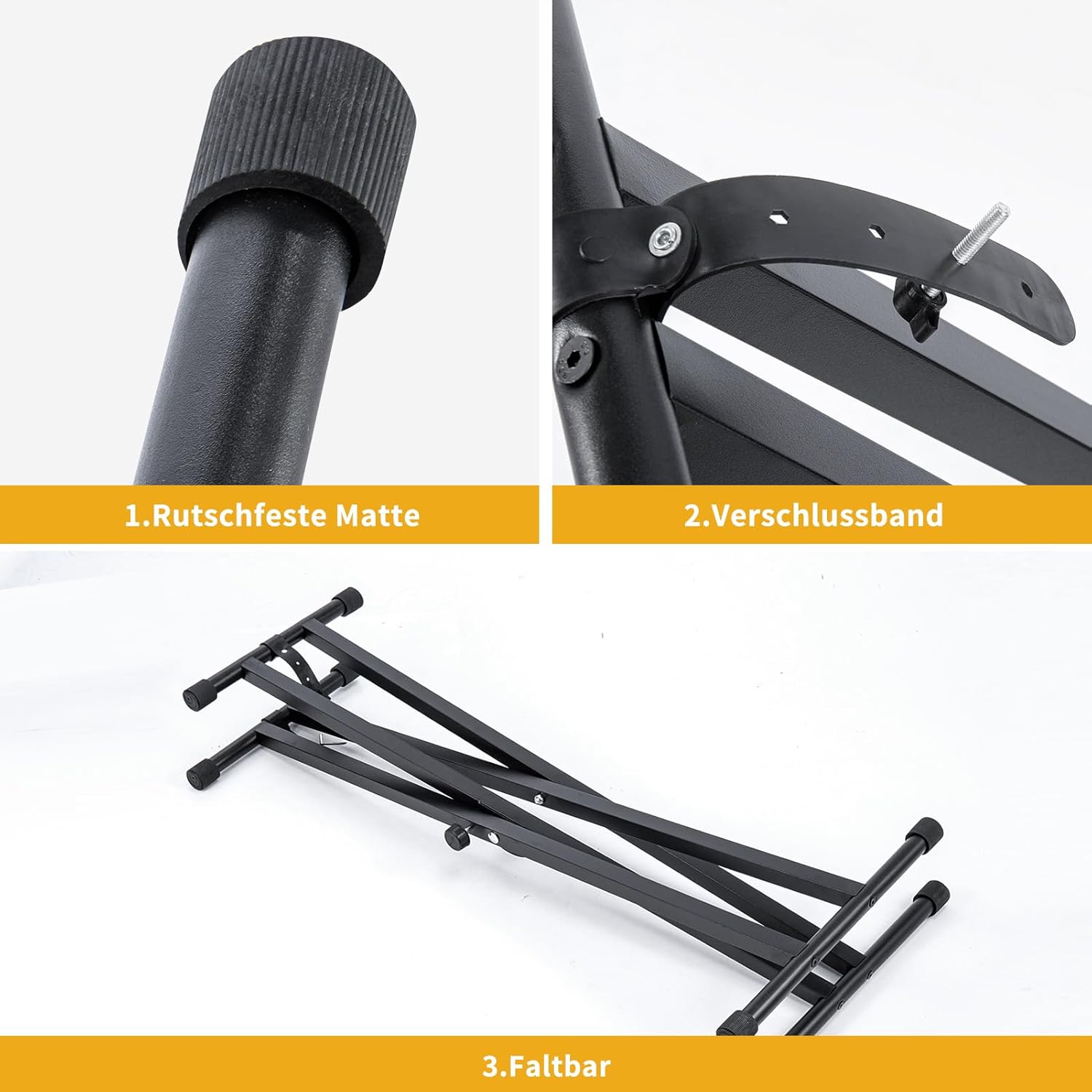• Robustes: Keyboard Ständer, Dies Ist Ein Sehr Robuster Tastatur Ständer, Gefiederten Mit Double-X Metallkonstruktion Sorgt Für Besondere Stabilität.Der Keyboard Stativ Ist Sehr Stabil, Durch Die Doppelstreben Wackelt Es Nicht. Die Halterung Hat