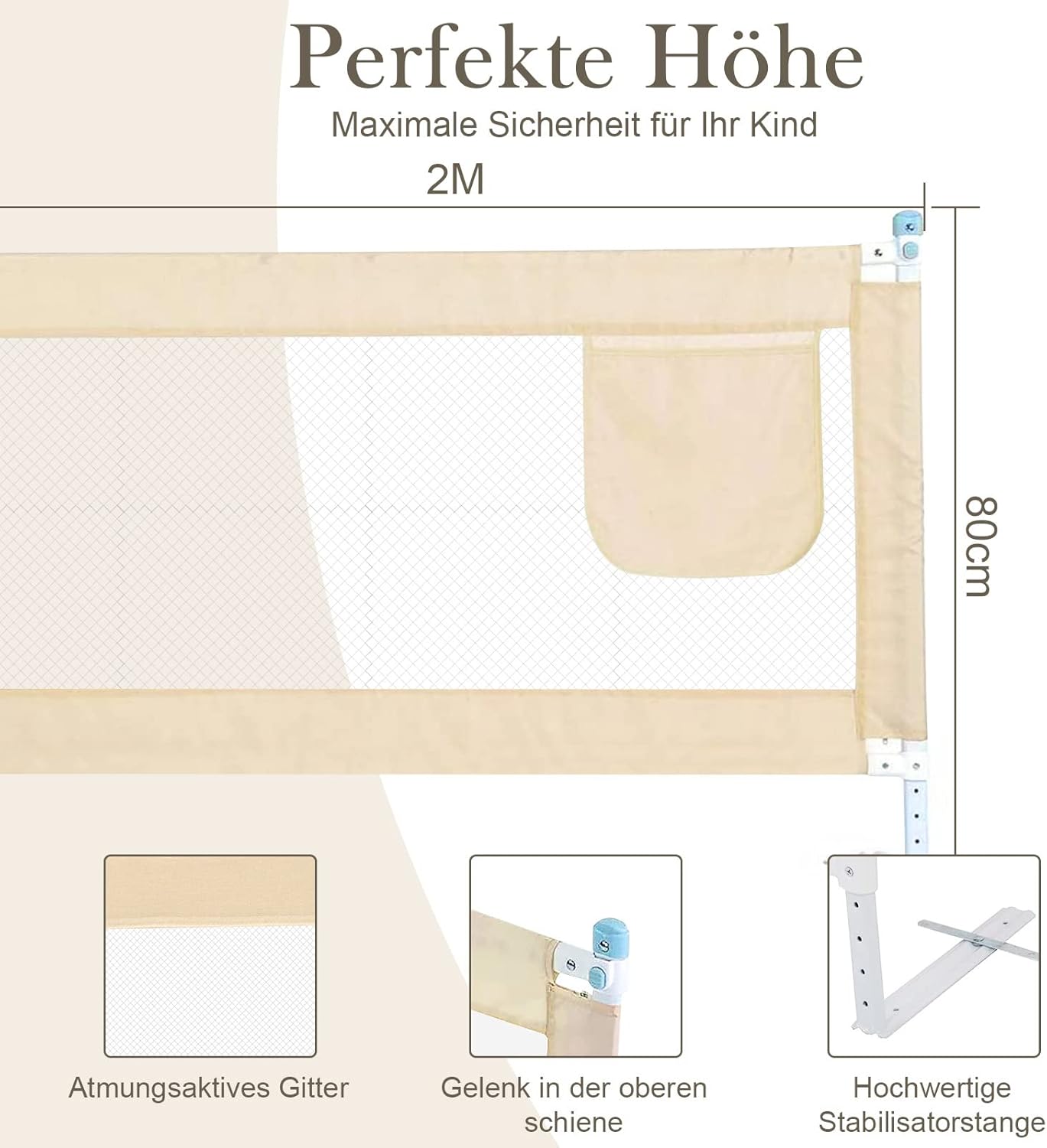 - [Extrahoch mehr Sicherheit]Das Kinderbettgitter ist 80cm extra hoch und 200cm lang. Es ist höher als ein normales Gitterbett. Das bedeutet, dass unsere Tagesdecken mehr Schutz bieten. ,Hinweis: Bitte keine Schraubenteile unterschiedlicher Grössensets
