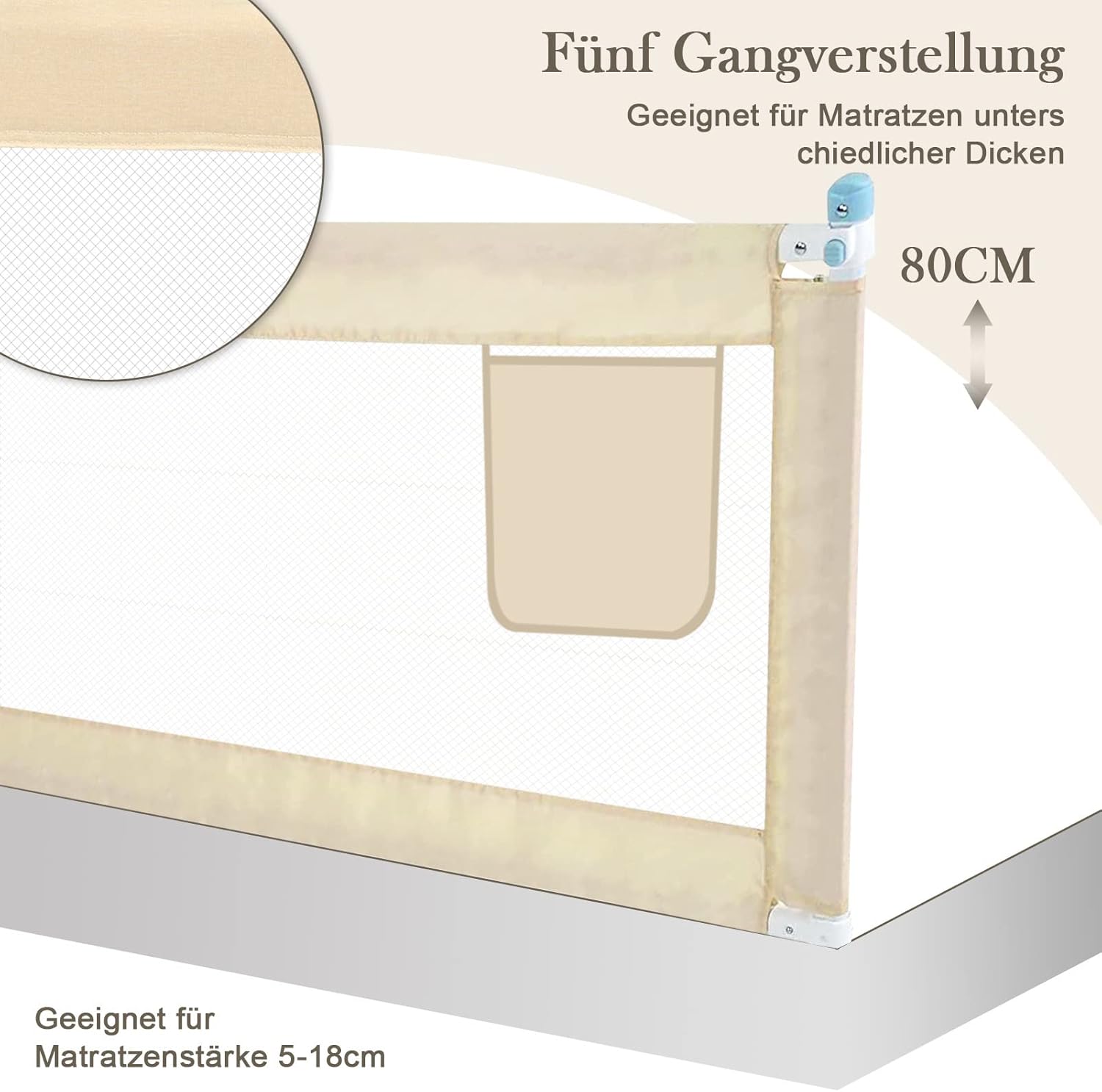 - [Höhenverstellbares Bettgitter]Das bettgitter rausfallschutz hat fünf verstellbare Anschläge. Die Höhe des bettumrandung rausfallschutz kann je nach Dicke der Matratze stufenlos eingestellt werden. Daher kann unsere Absturzsicherung an den meisten