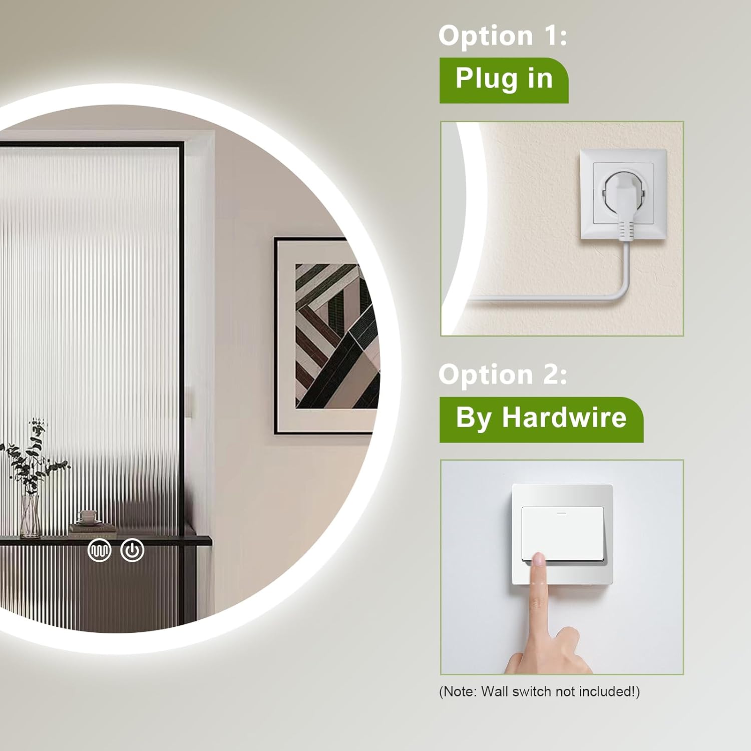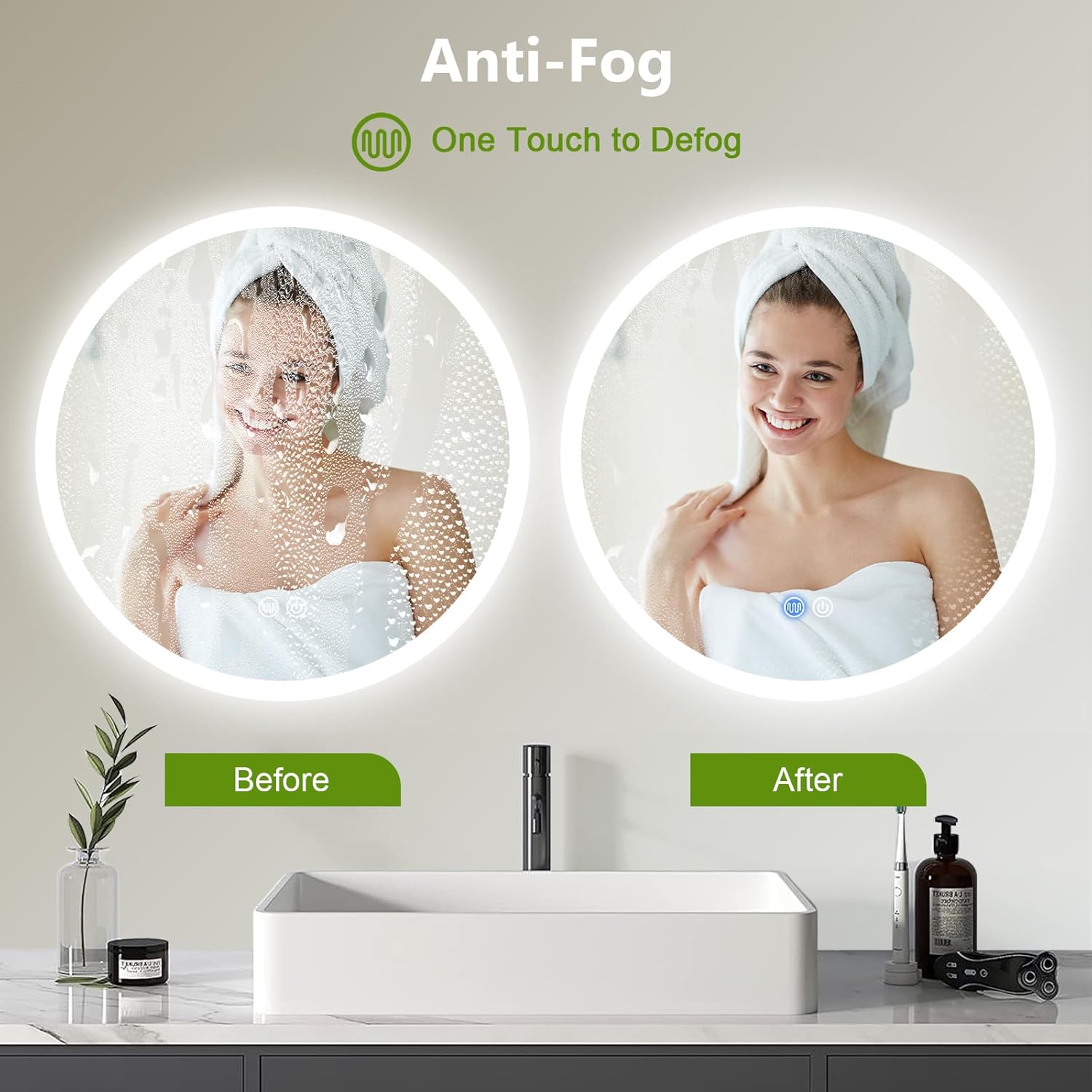 - Wasserdichtigkeitsklasse IP54: Runder Spiegel, der gesamte LED-Badezimmerspiegel erfüllt die Schutzart IP54, unser runder Badezimmerspiegel wird mit einem integrierten Montagepad geliefert. Kein ständiges Spiegelwischen mehr! So können Sie sich auf