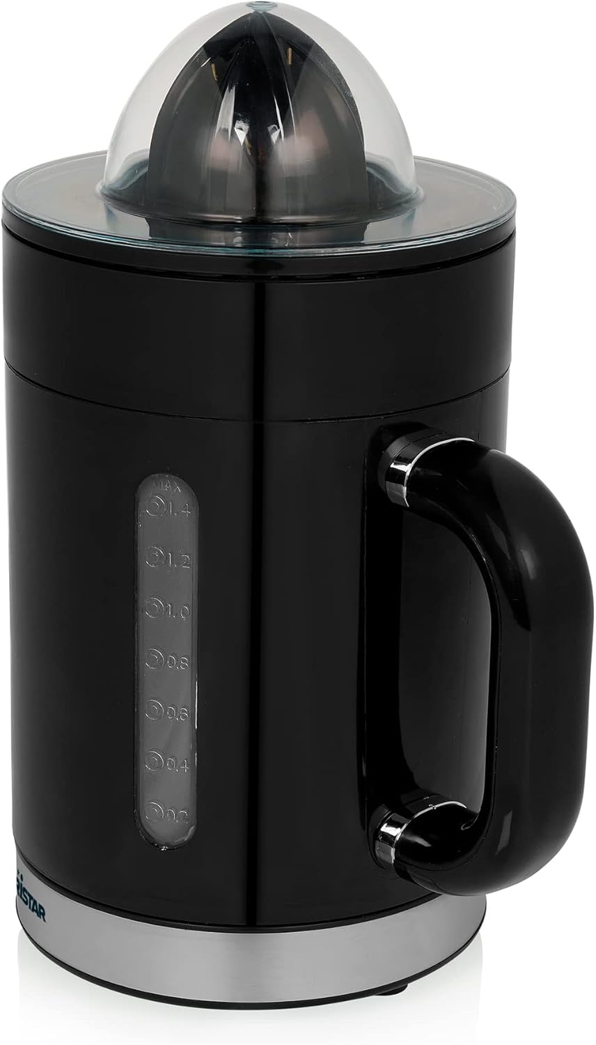 - Mit dem praktischen, transparenten Deckel, schützen Sie die elektrische Zitruspresse vor Staub und halten Sie sie sauber. Darüber hinaus verfügt sie über einen Griff, mit dem Sie den Behälter leicht an den Tisch tragen können. Die Tristar