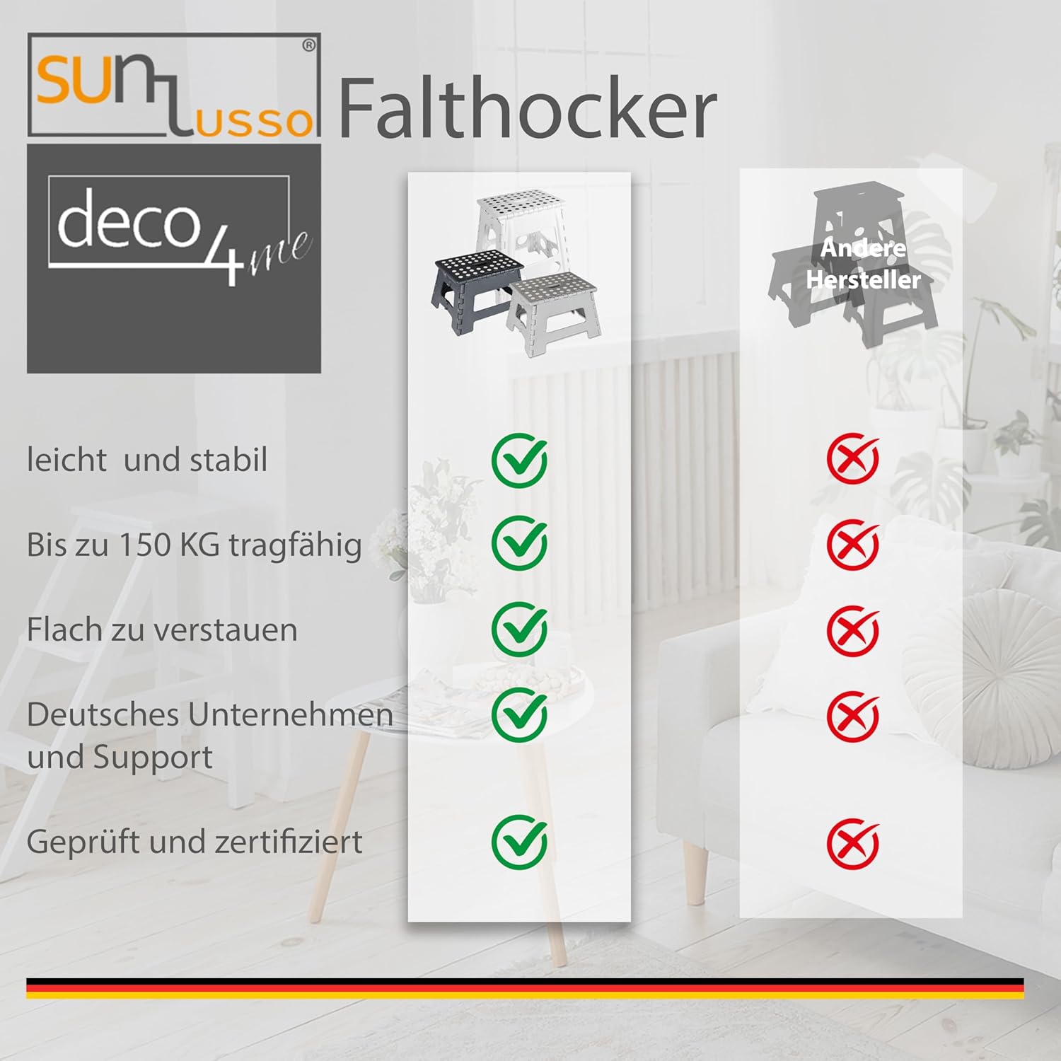 - 𝗗𝗘𝗖𝗢𝟰𝗠𝗘 - Klappbare Trittstufe ist 22 cm hoch und bis zu 150 kg belastbar. Rastet beim Aufstellen ein für mehr Stabilität.