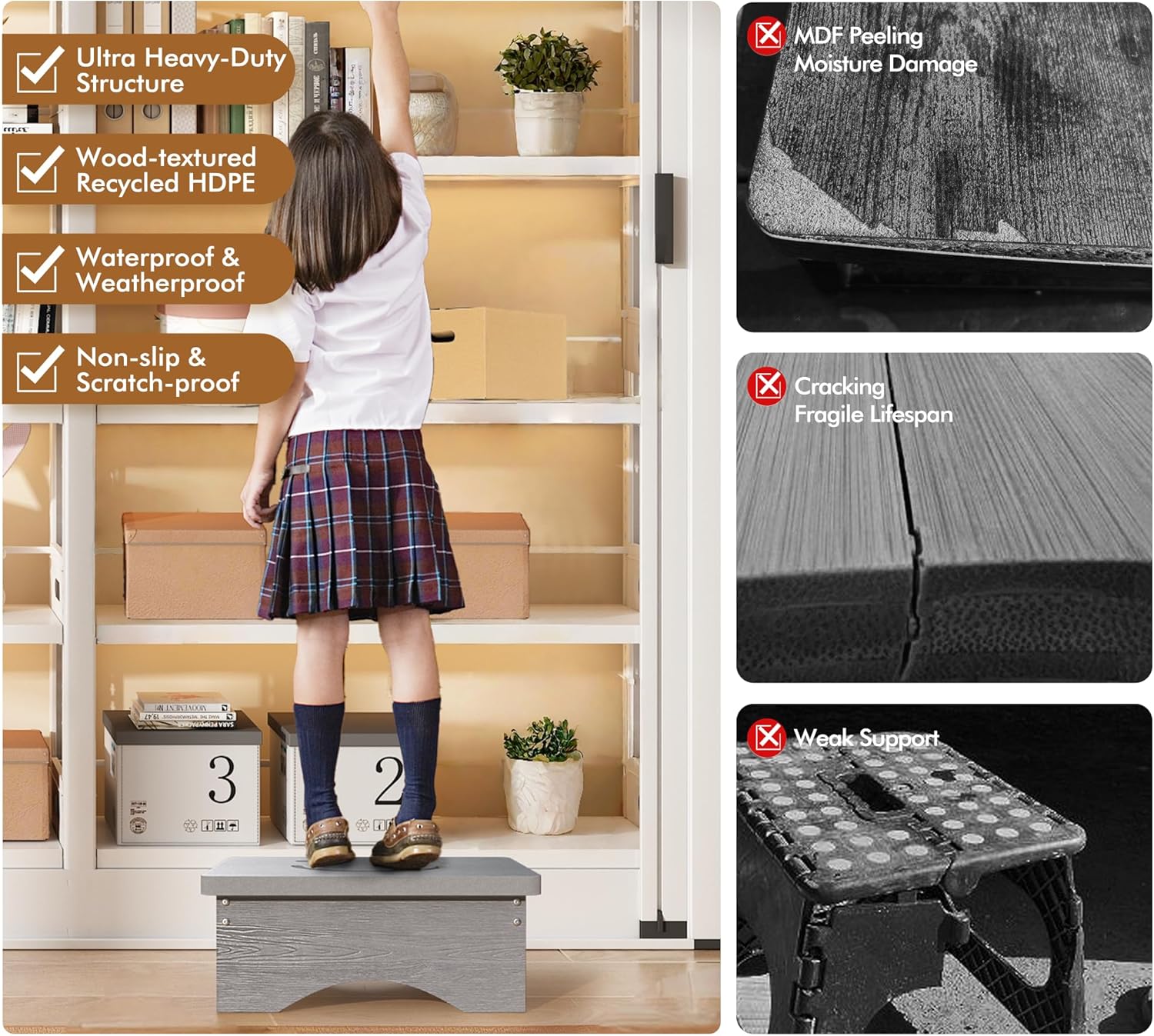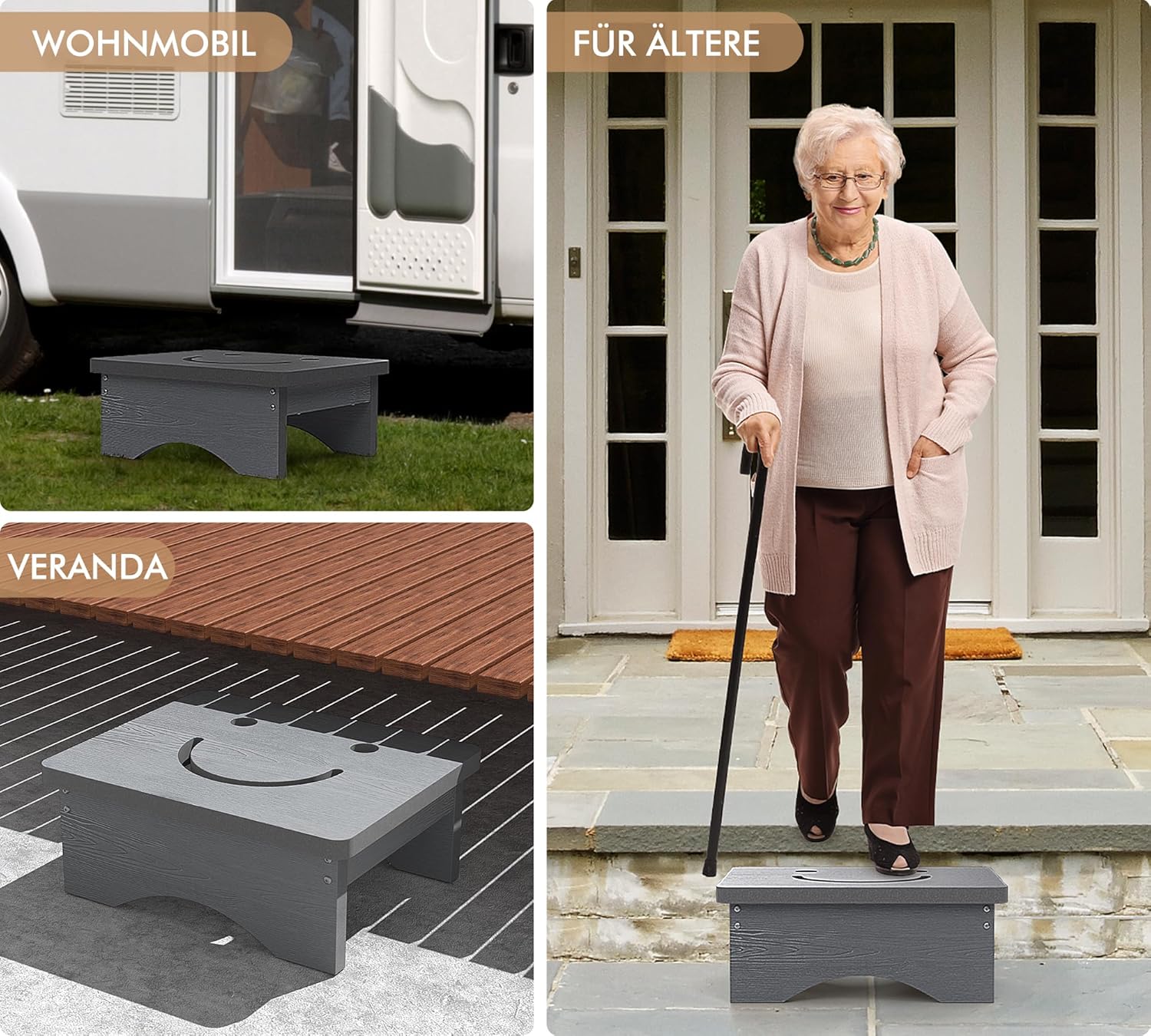 - 【Rutschfestes Design】 Holzstruktur-Oberfläche mit Anti-Rutsch-Pads sorgt für sicheren Halt. Perfekt als Fusstritt in Küchen, Bädern, Werkstätten oder als stabiles Aussenpodest bei Türen und Terrassen.