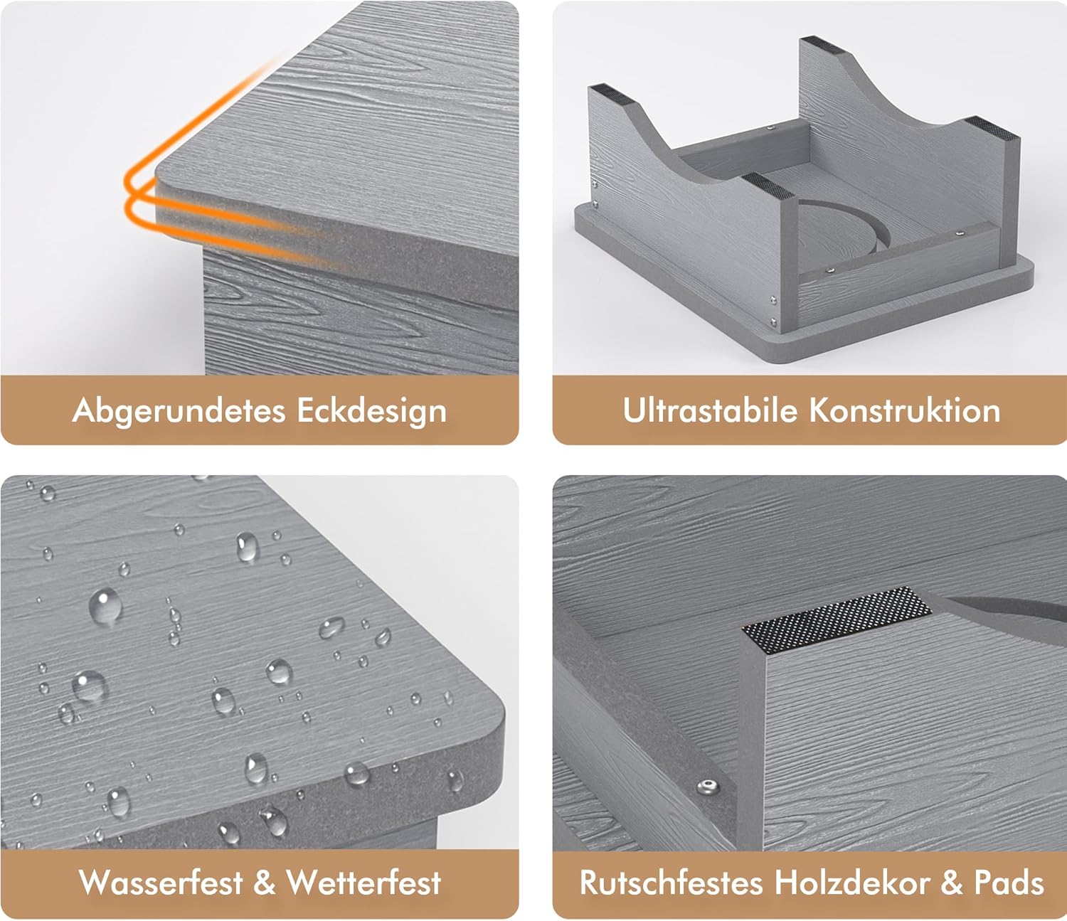 - 【Stark & Wasserdicht】 Aus hochwertigem HDPE gefertigt, ist dieses Podest Holz wetterfest, robust und rissbeständig. Ideal für den Einsatz drinnen und draussen – ob als Shower Step, Bath Step, Garden Step oder kleines Treppenpodest für Regale.