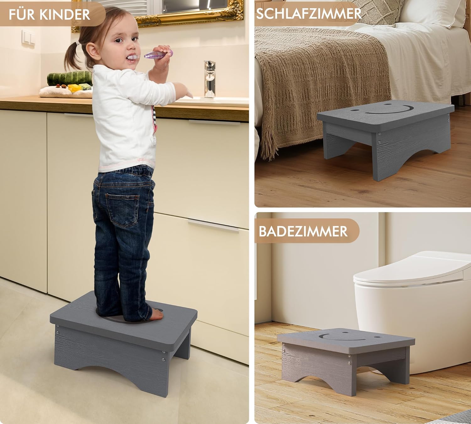 - 【Smiley Face Stil】 Mit einem Lächeln dank unseres einzigartigen Designs bringt dieser Tritthocker gute Laune in den Alltag. Perfekt als Küchen-Podest, Badezimmer Trittstufe, Wohnwagen Trittstufe oder dekorativer Holzhocker für Terrassen.