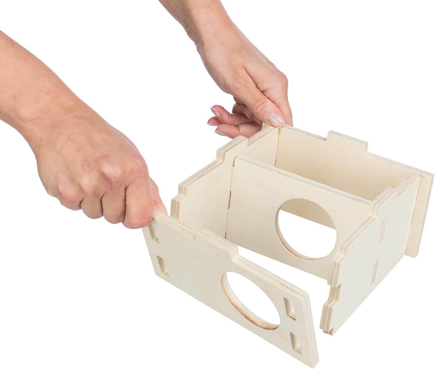 • Das Kleintierhaus wird aus unbehandeltem Holz produziert und ist zum Beispiel für grosse Hamster und Degus geeignet