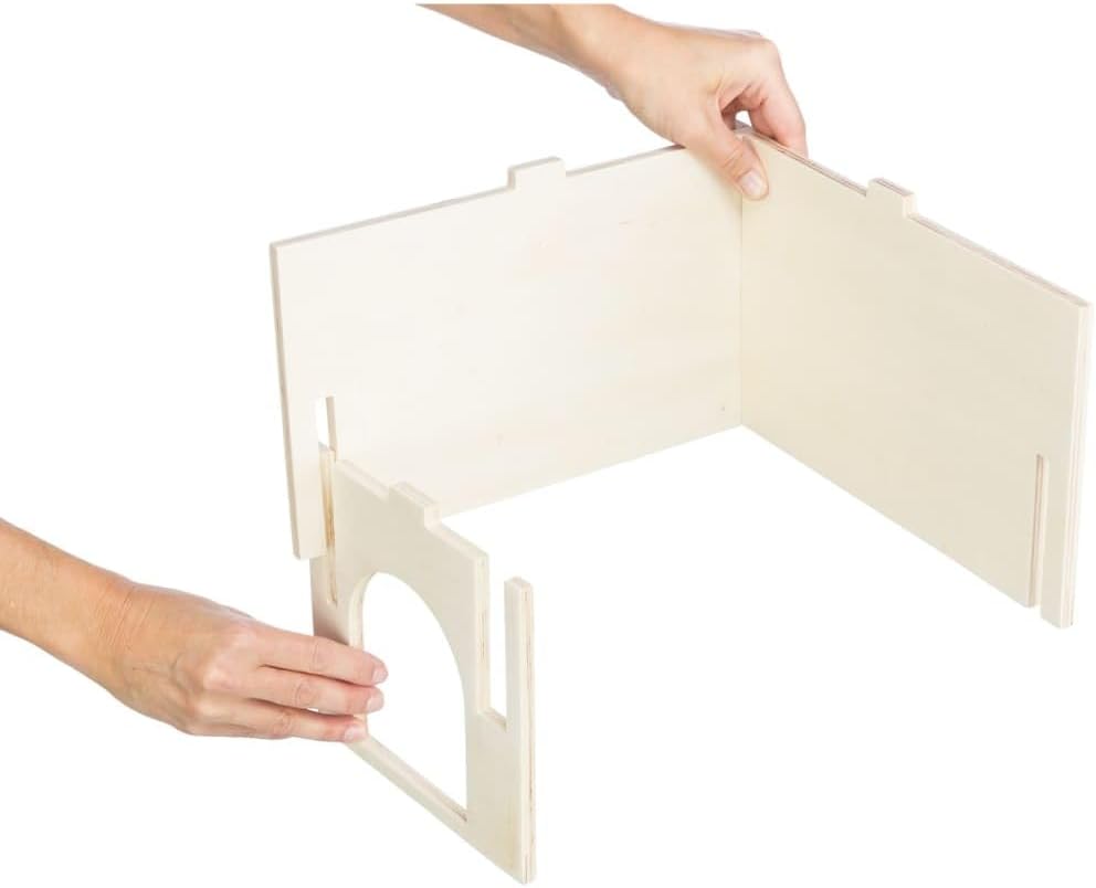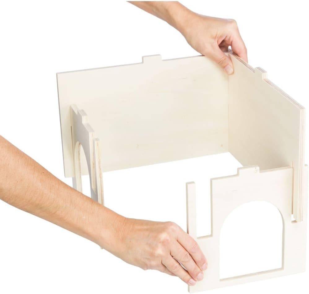 - Das Eckhaus für Kleintiere wird ohne Klammern und Nägel hergestellt