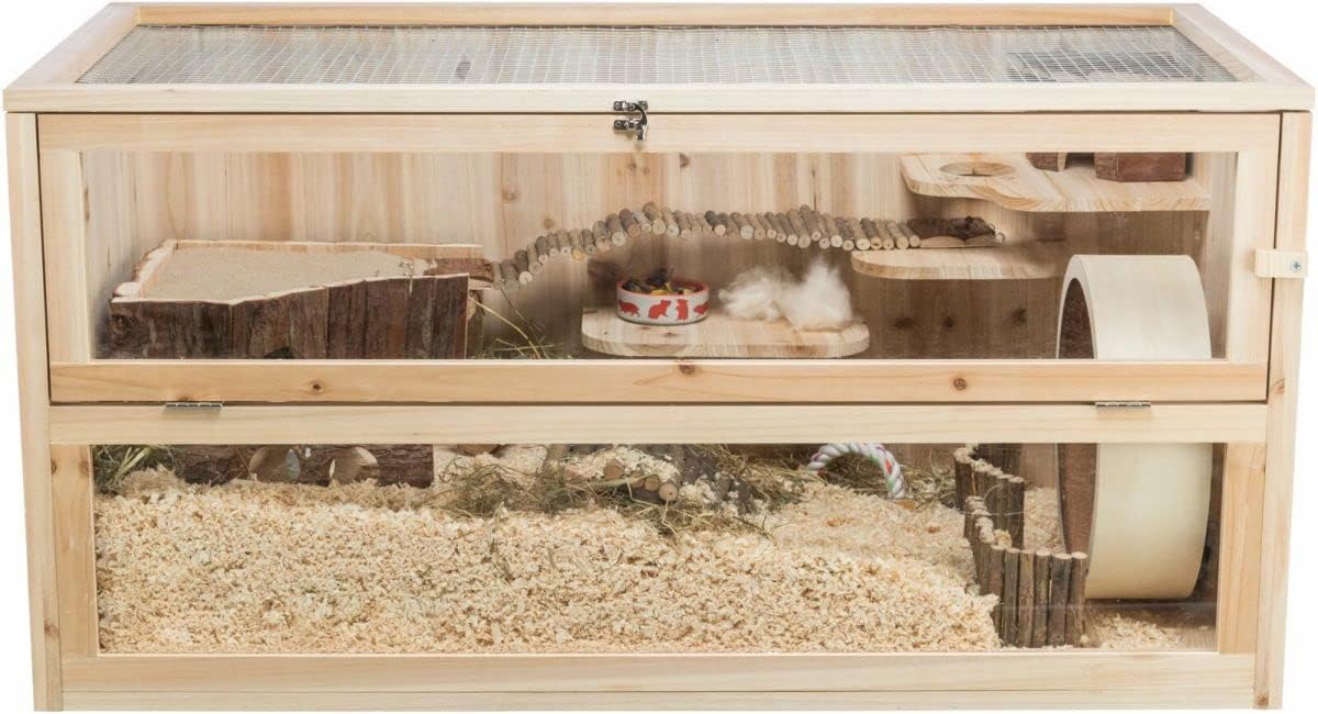 - Das untere Frontelement ermöglicht eine extra hohe Befüllung mit Einstreu zum Buddeln und für den Höhlenbau