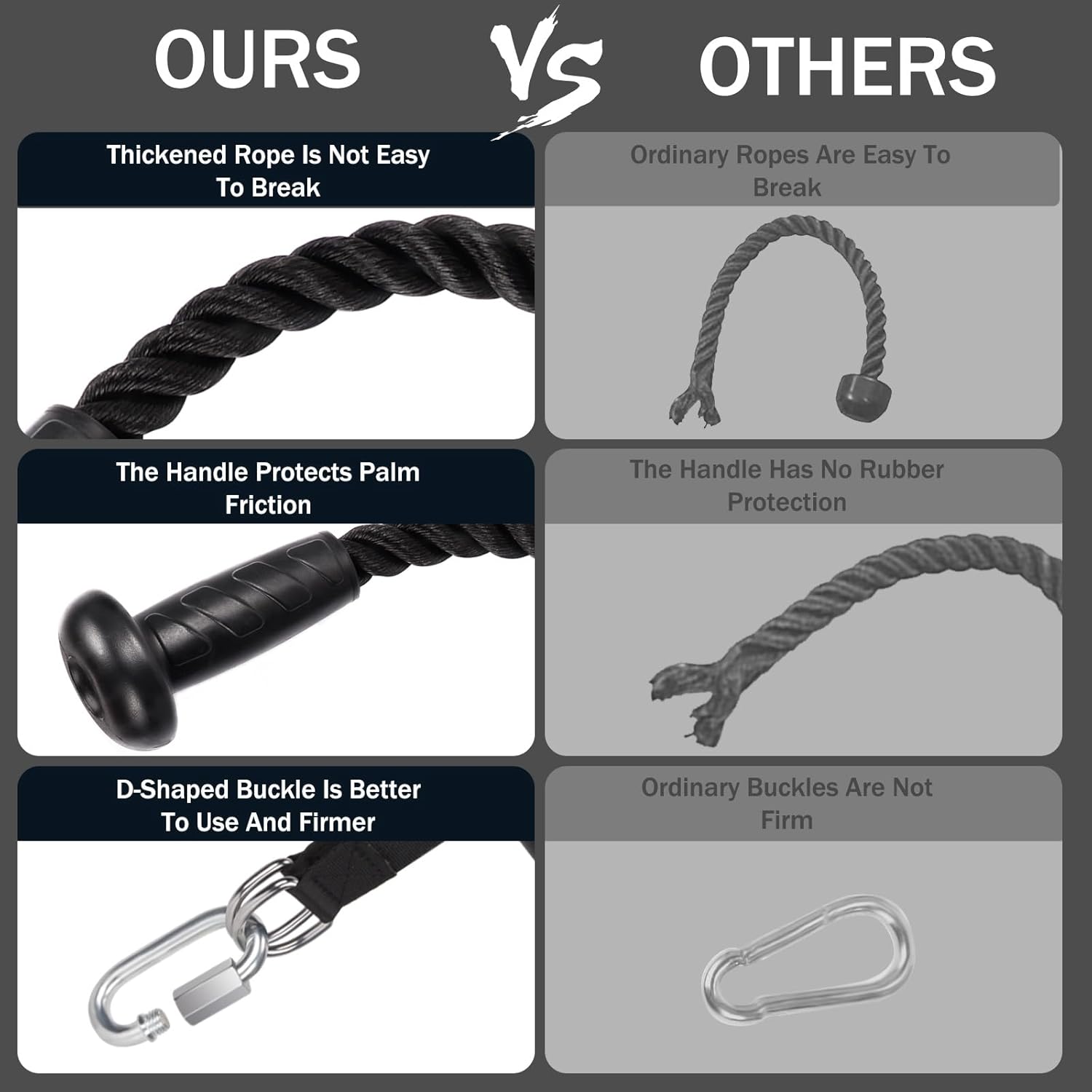 - 【VOLLSTÄNDIGE VERPACKUNGSLISTE, ALLES AUS EINER HAND】beim Kauf dieses Produkts erhalten Sie das folgende Zubehör: ein Trizeps-Seilset, eine M8-U-Schnalle aus Metall, eine Metall-Rundstangenbasis und eine M6-U-Schnalle aus Metall, einen Nylon-D-Ring