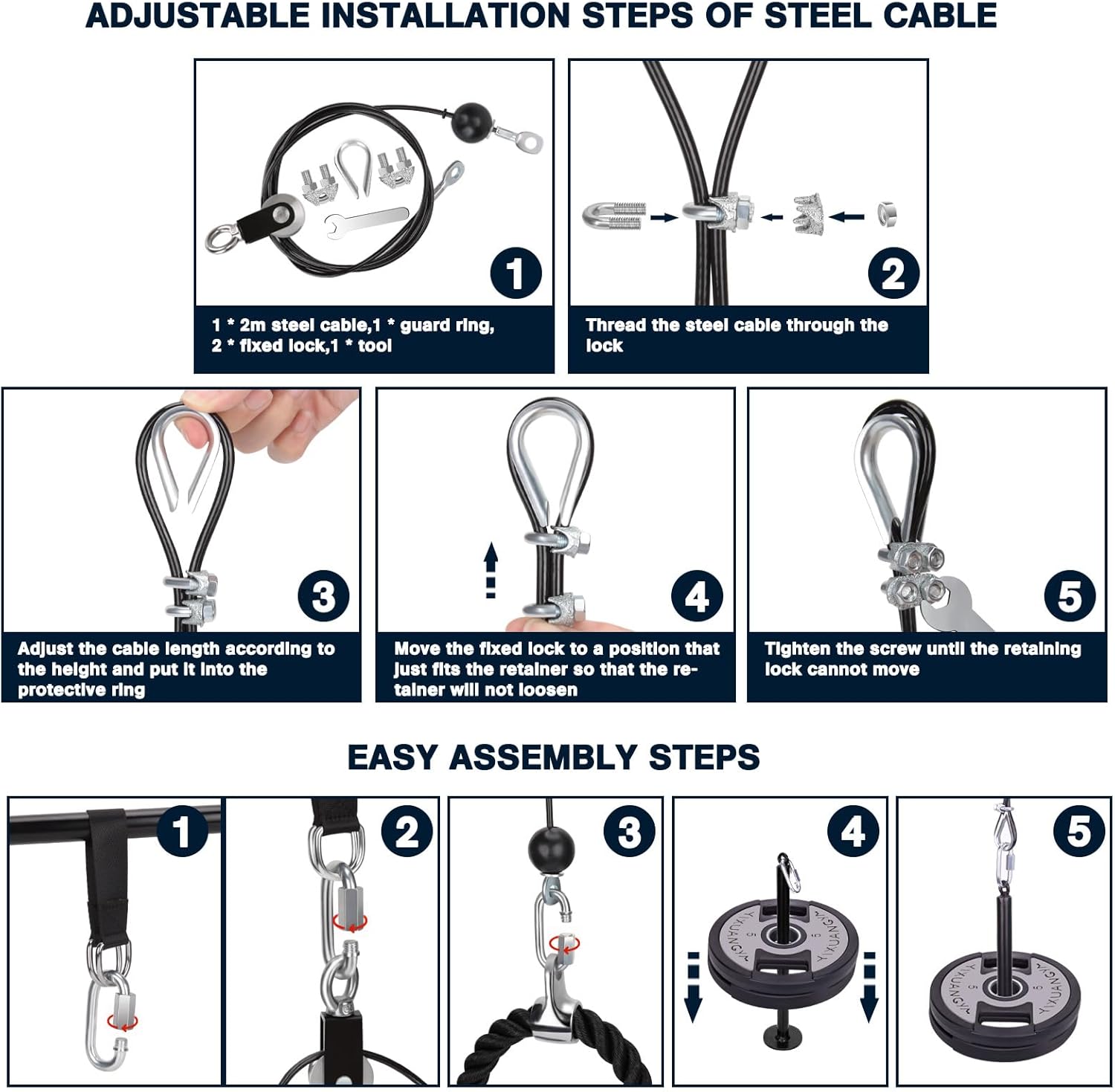 - 【EINFACH ZU MONTIEREN UND EINFACH ZU VERWENDEN】der Installationsvorgang ist schnell und einfach. Das Kabelzugsystem ist weitreichend kompatibel und kann problemlos an Power Racks, Klimmzugstangen, Balken und anderen Stellen angeschlossen werden, an