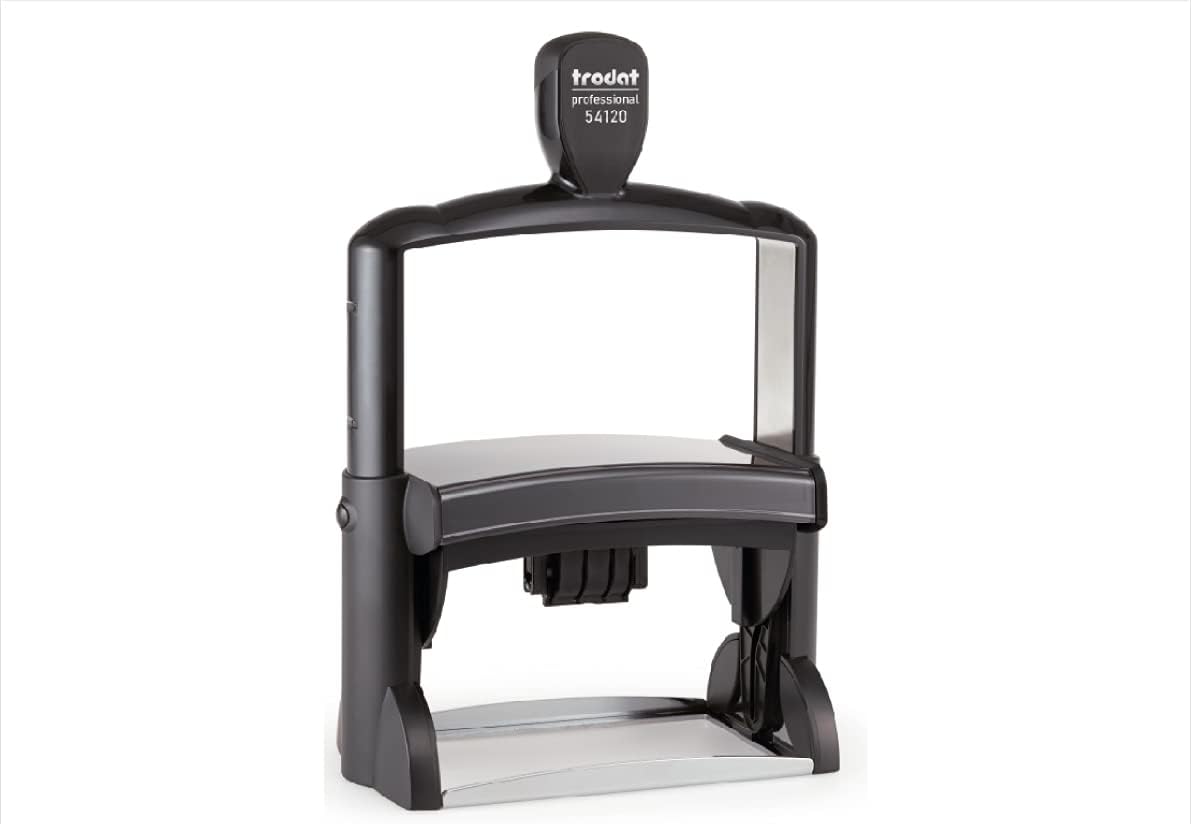 PRODUKTBESCHREIBUNGEN Dieser selbstfärbende Trodat Professional 54120 Datumstempel ist leicht und stabil. Der Stempeldruck ist leicht zu positionieren, der Wippenmechanismus funktioniert problemlos und lädt zum Stempeln ein. Dieser Datumstempel hat eine Tragkonstruktion aus Metall, was ihn zum intensiven und dauerhaften Gebrauch besonders geeignet macht. Auf dem Trodat Professional 54120 haben Sie viel Raum, beispielsweise für Tabellen oder ein grosses Logo. Mehr