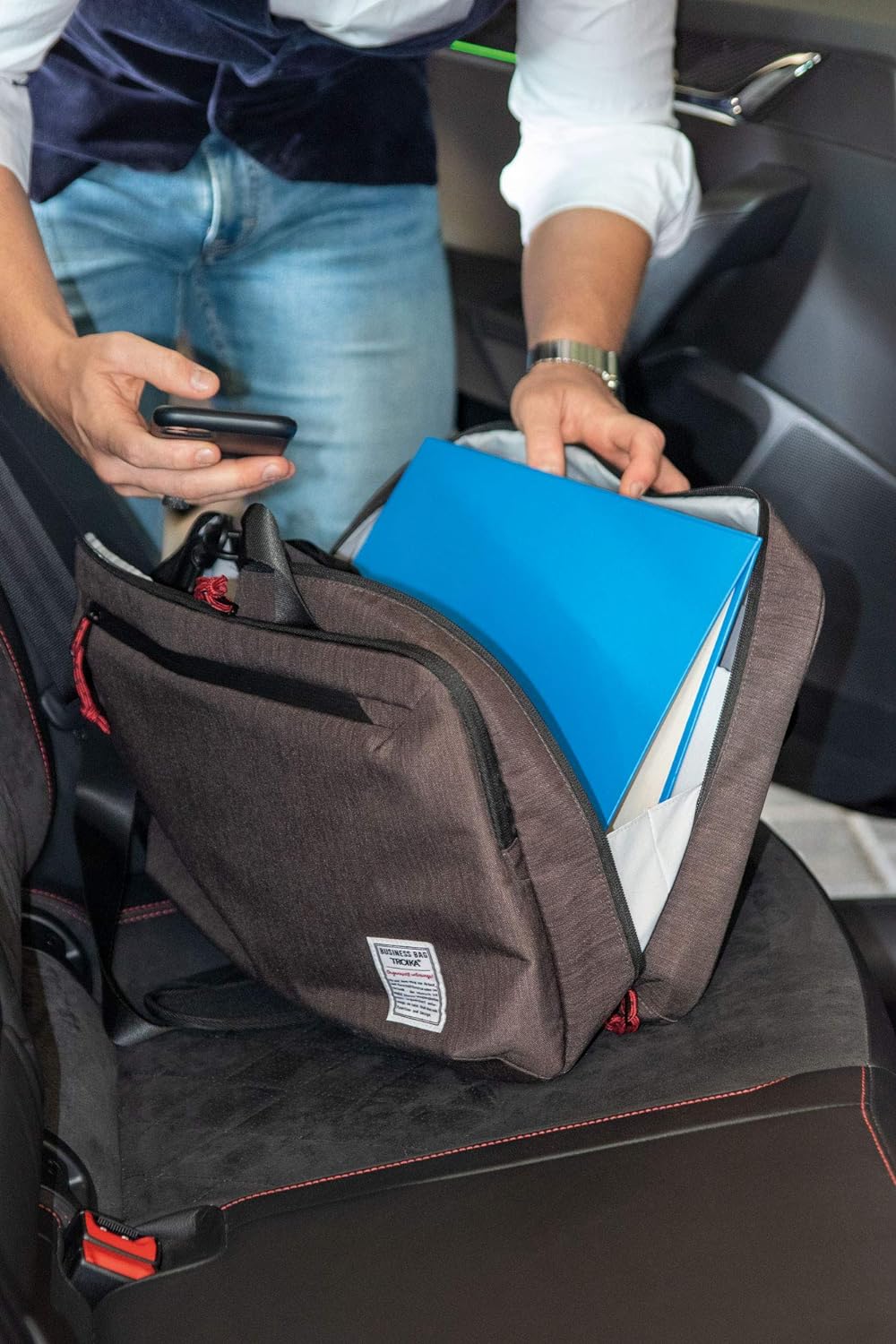 - Aktentasche für Laptop, Unterlagen + Elektronikzubehör, Hauptfach für DINA4 Ordner, Laptop (bis 15,4''), gepolstertes Tablet-Einschubfach + Fronttasche mit Klettverschluss, seitliches Netzfach für Flasche/Becher, 3 Stecktaschen, Fronttasche mit