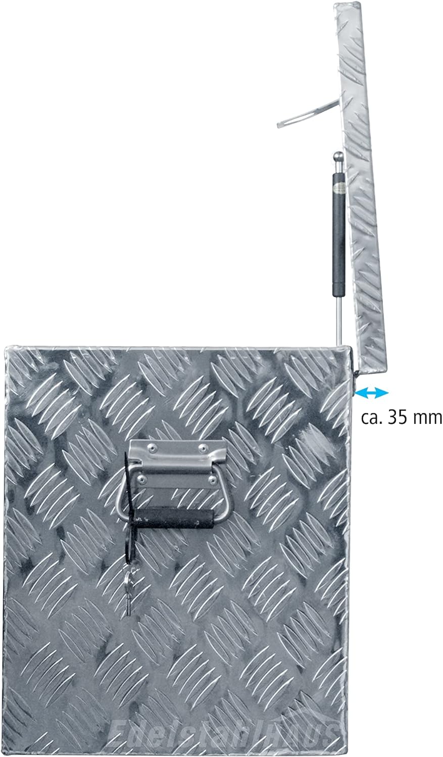 • Volumen: 118 Liter ; Material: Aluminium Riffelblech AlMg1; Wandstärke: ohne Riffel gemessen 1,3 mm, mit Riffel gemessen 2 mm
