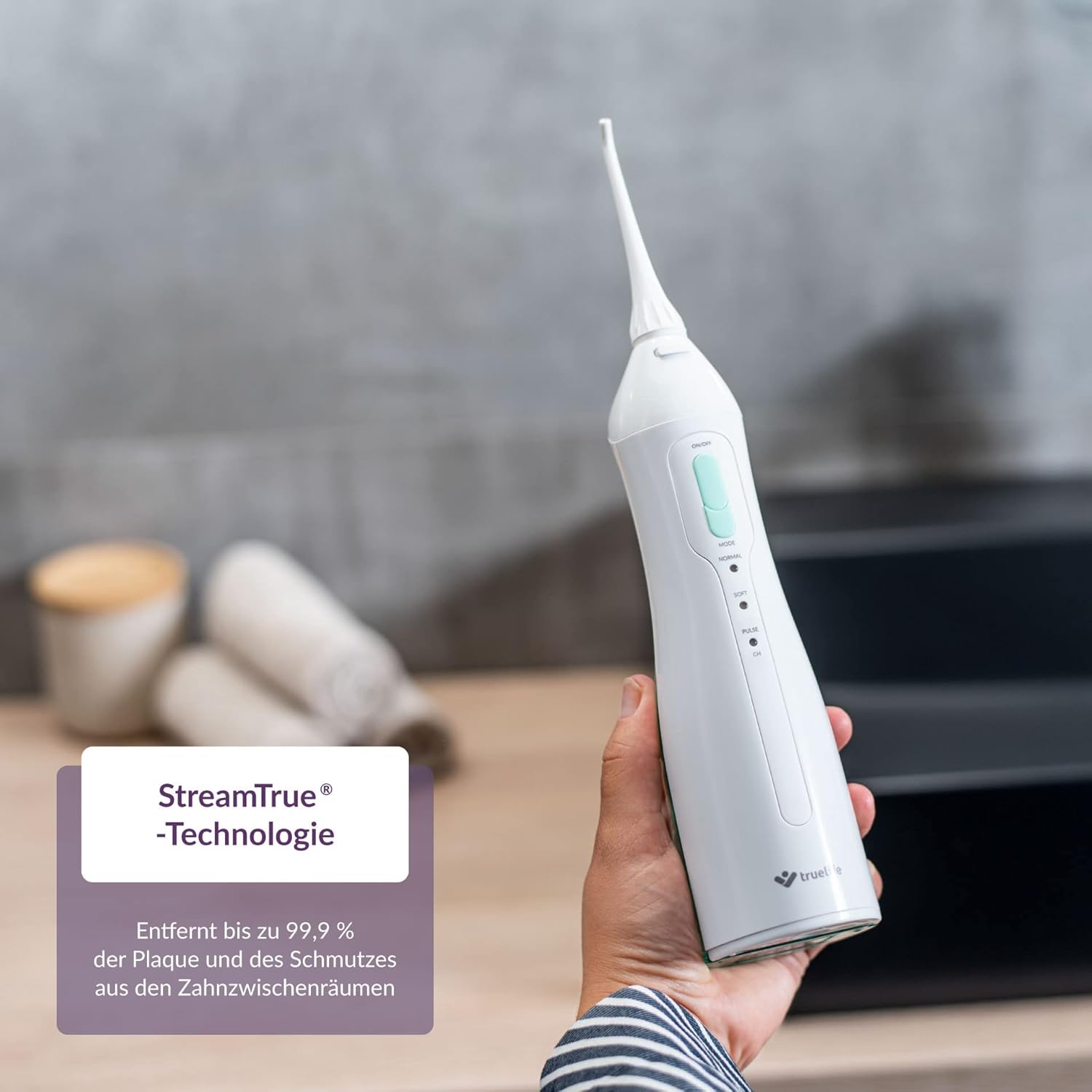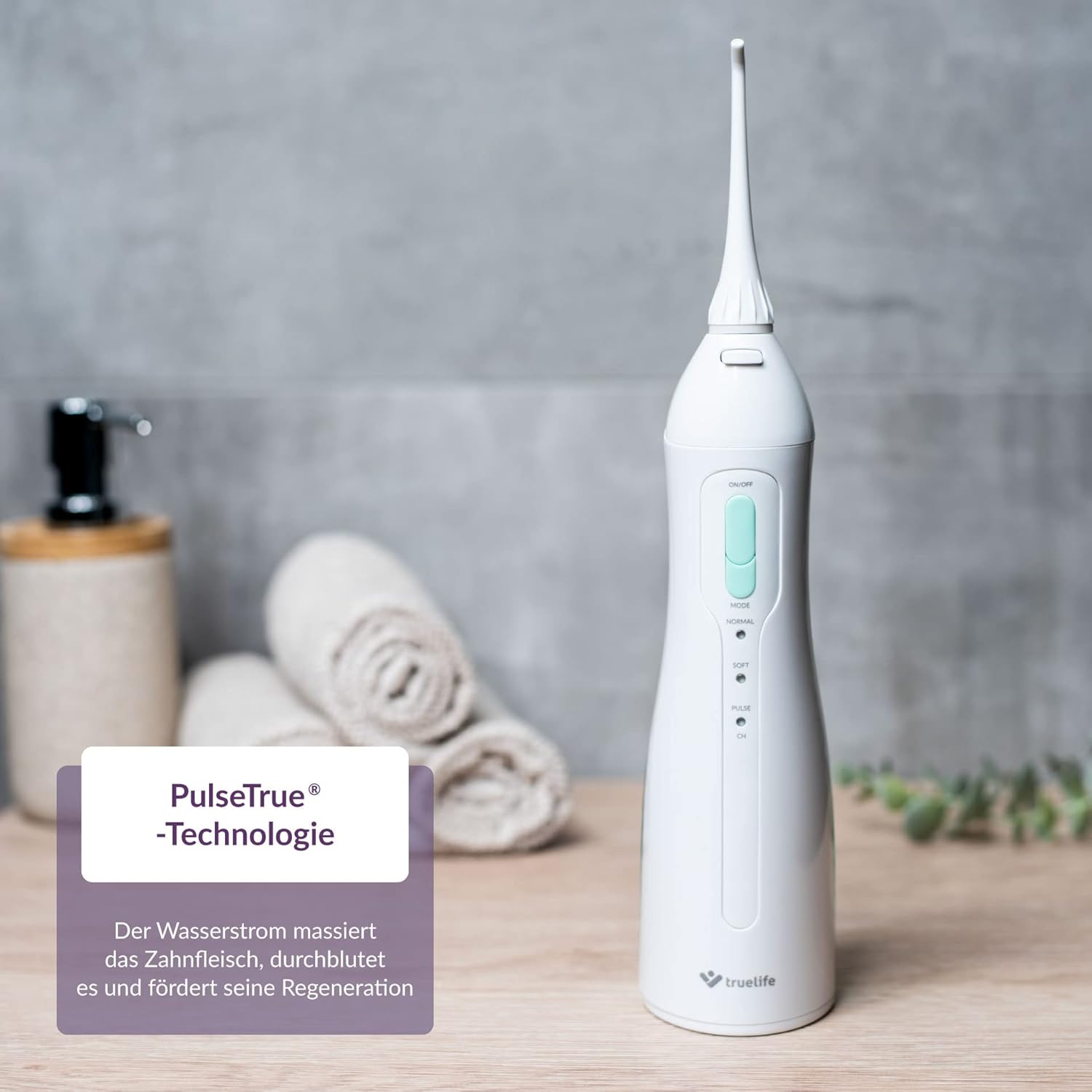 - DREI BETRIEBSARTEN - Verwenden Sie den Betriebsmodus Normal für die tägliche Mundpflege. Der Betriebsmodus Soft ist für Personen mit empfindlichen Zähnen und empfindlichem Zahnfleisch geeignet. Der Betriebsmodus Pulse massiert das Zahnfleisch mit der