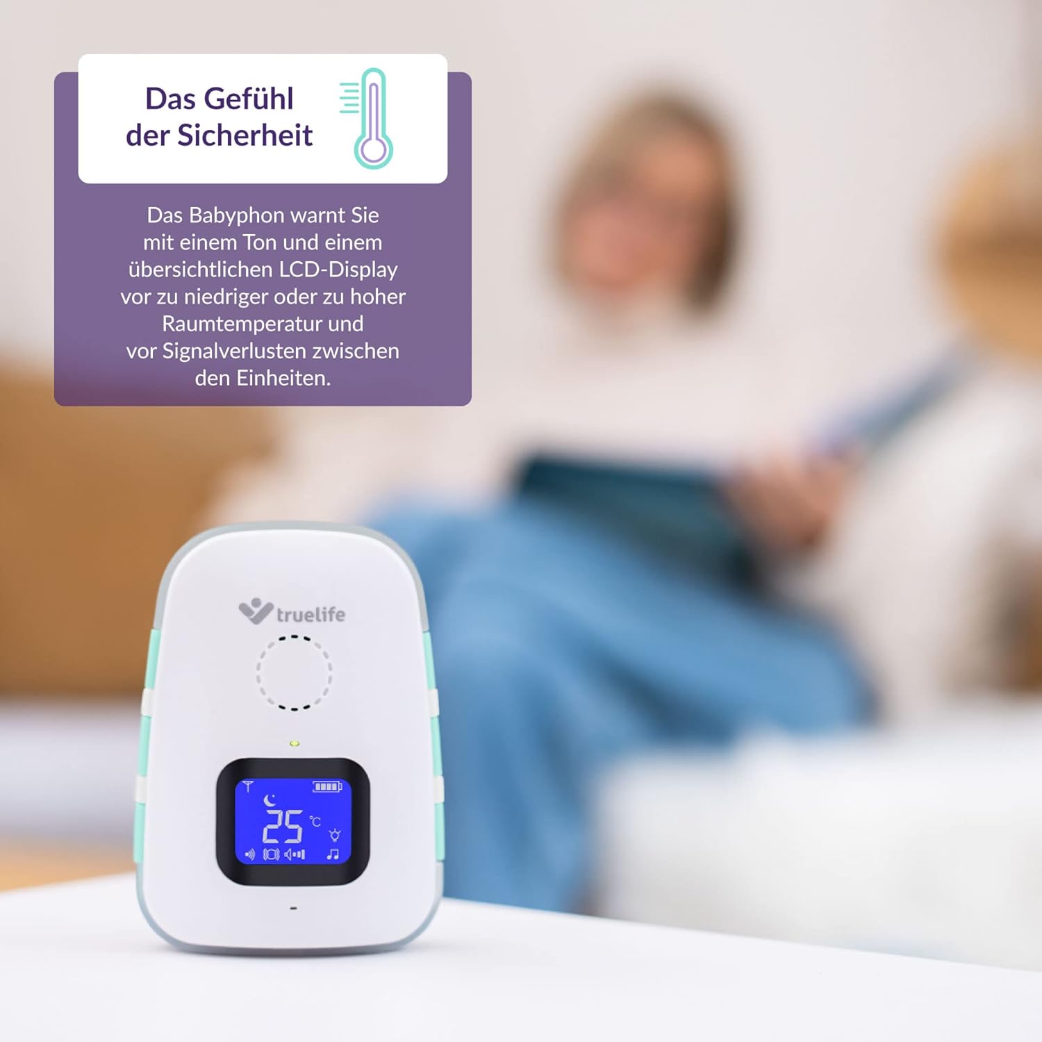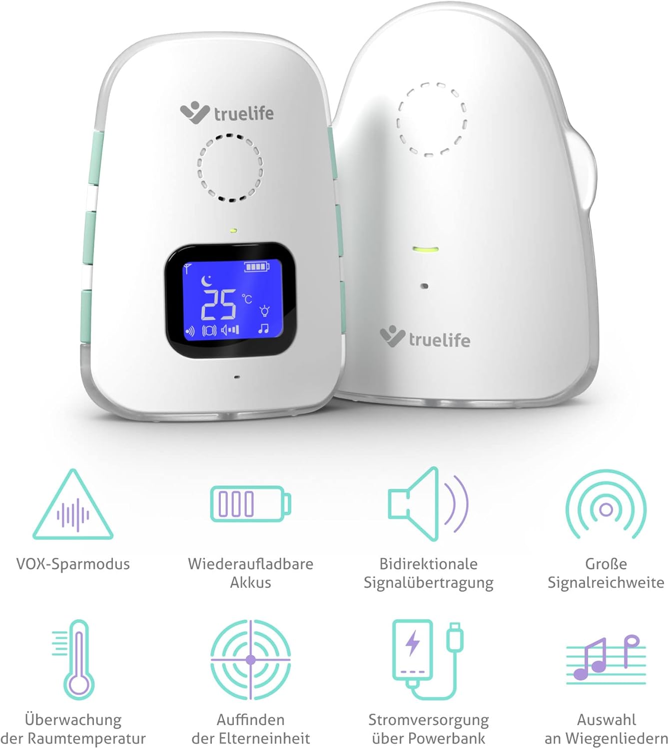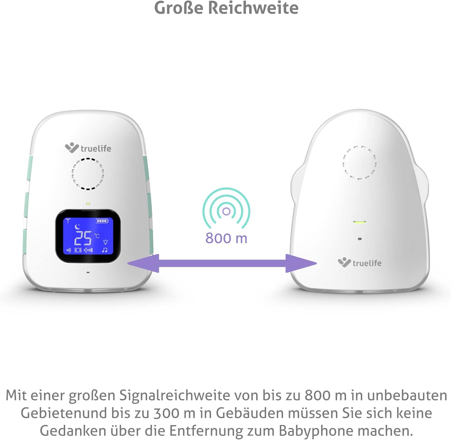 - Lange Laufzeit und Reichweite - Mit dem Babyphone TrueLife NannyTone VM3 können Sie den kleinsten Schluckauf aus bis zu 800 m Entfernung in unbebauten Gebieten und bis zu 300 m Entfernung in Gebäuden hören. Der VOX-Modus spart ausserdem Batterie, da