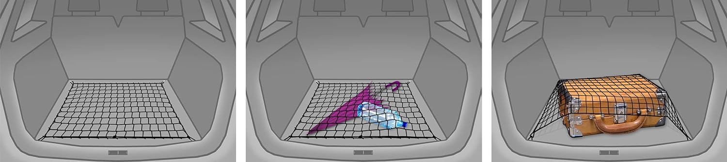 - Kein Durcheinander mehr: Das Netz ist für optimal zum Festhalten von Einkäufen, grösseren und kleineren Gegenständen im Gepäckraum. Dank der Maschenöffnung: 4,5x4,5 cm alles bleibt an Ort und Stelle, wo es gehört, und fliegt nicht durch die Gegend.