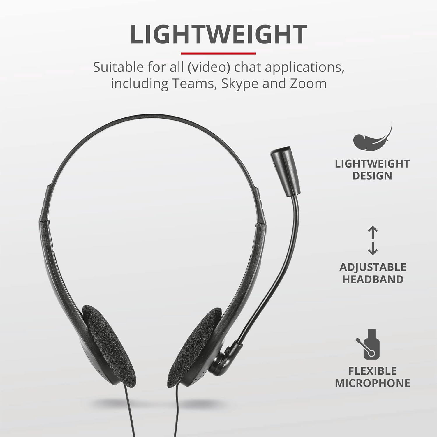 - Leichtes Stereo-Headset mit regulierbarem flexiblem Mikrofon für Freisprechkommunikation