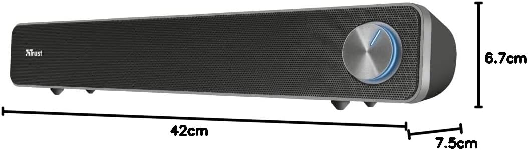 - ROBUSTES DESIGN – Die Trust Arys PC-Soundbar sieht nicht nur gut aus, sondern ist auch richtig robust. Das Metallgitter bietet Schutz und sorgt gleichzeitig für eine schlanke Optik.