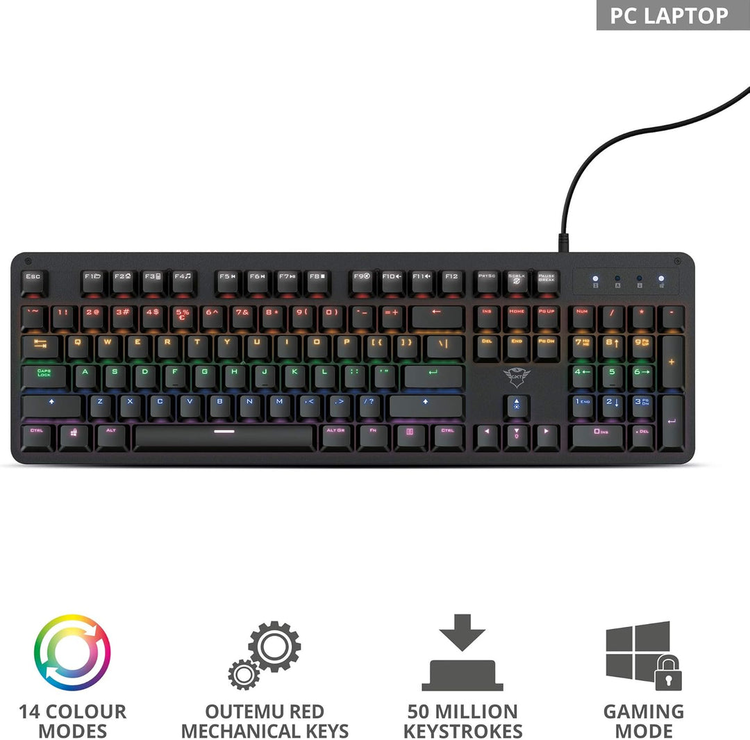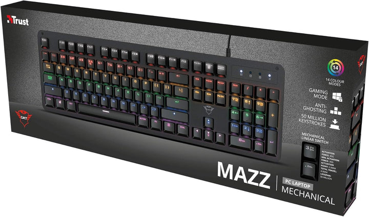 Trust Gaming Mechanische Gaming Tastatur GXT 863 Mazz - Mechanische Outemu Red Schalter, Deutsches Q
