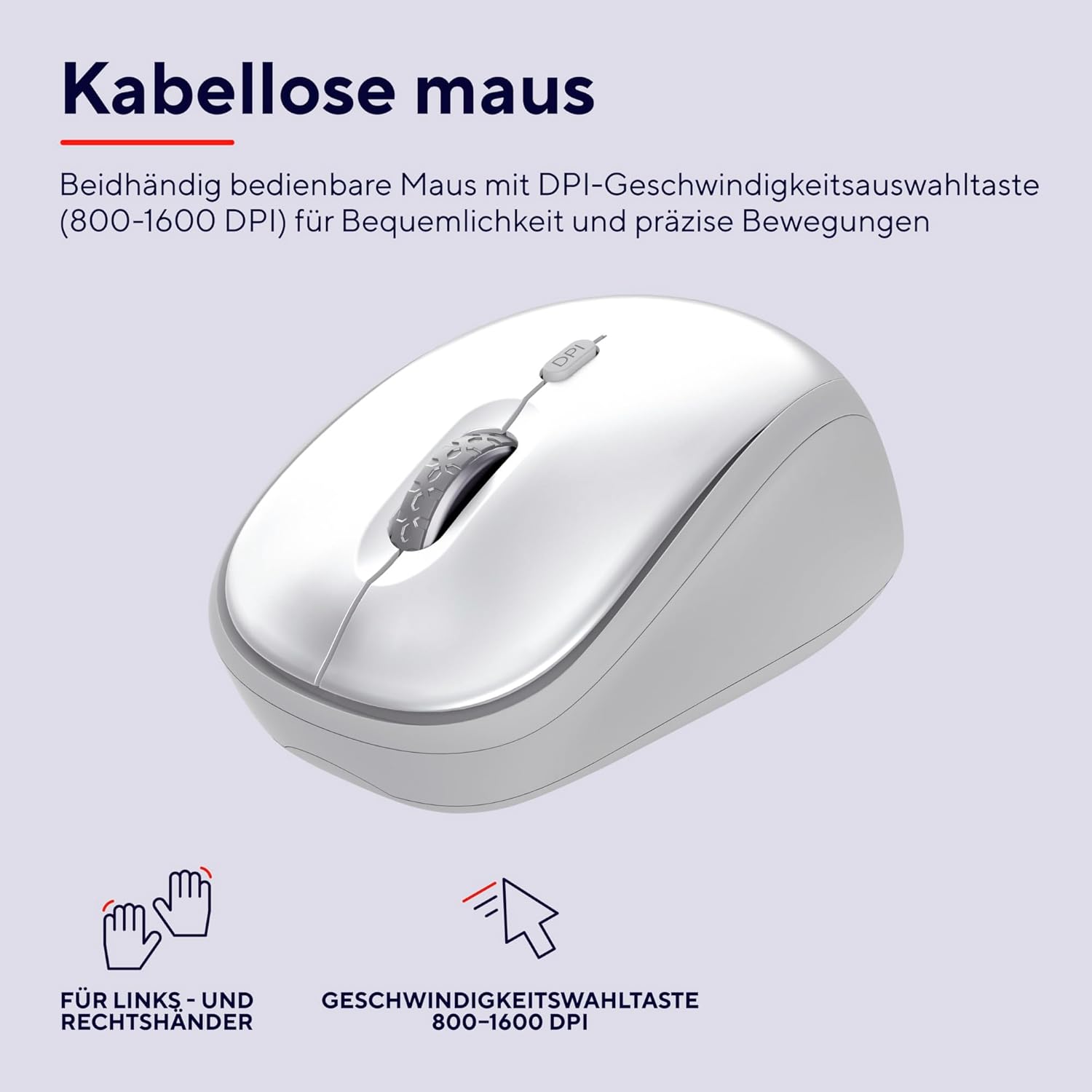 • MEISTERN SIE DIE MAUS – Klicken Sie sich mit der kompakten, beidhändig bedienbaren Maus den Weg zu einem produktiven Arbeitstag, dank der Geschwindigkeitswahltaste (800-1600 dpi) individuell anpassbar