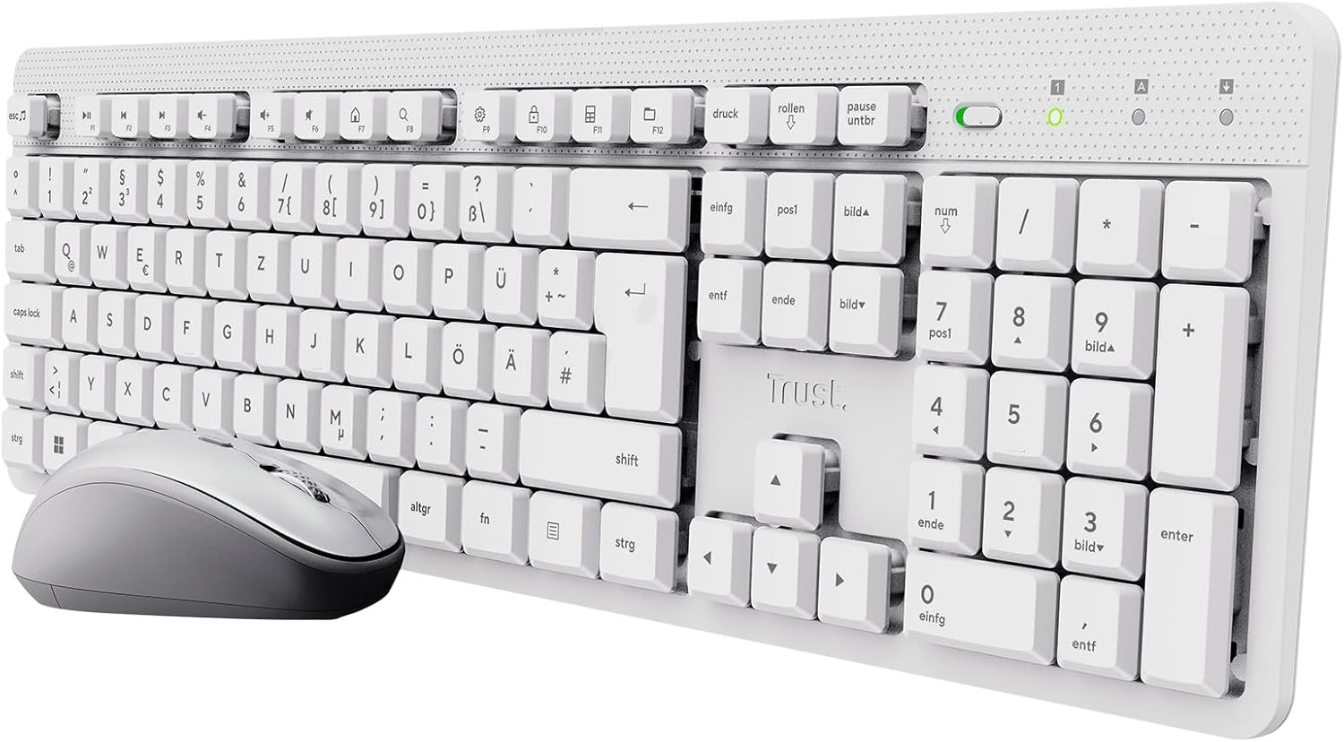 Trust ODY II Leise Tastatur Maus Set Kabellos Deutsches QWERTZ Layout, Flachen Tasten, Beidhändig Fu