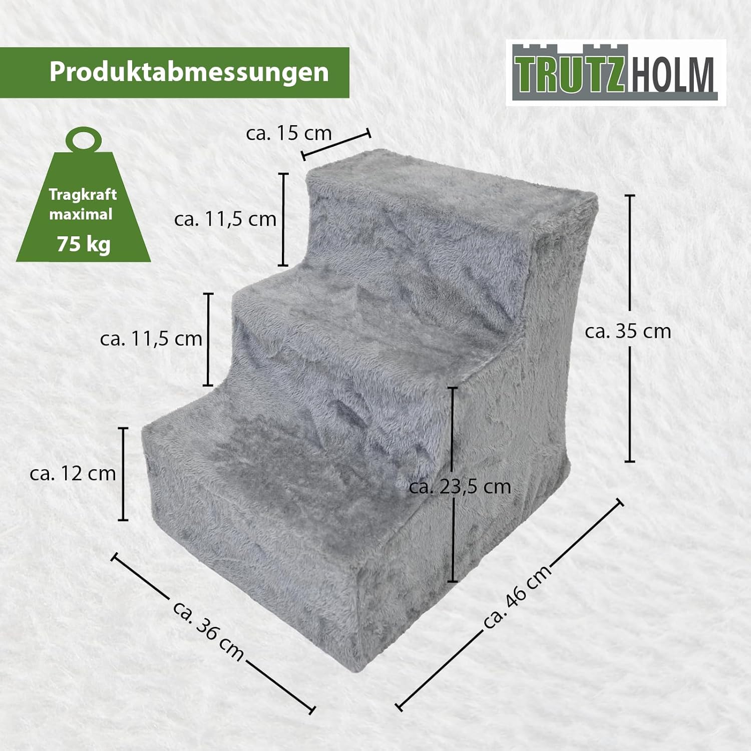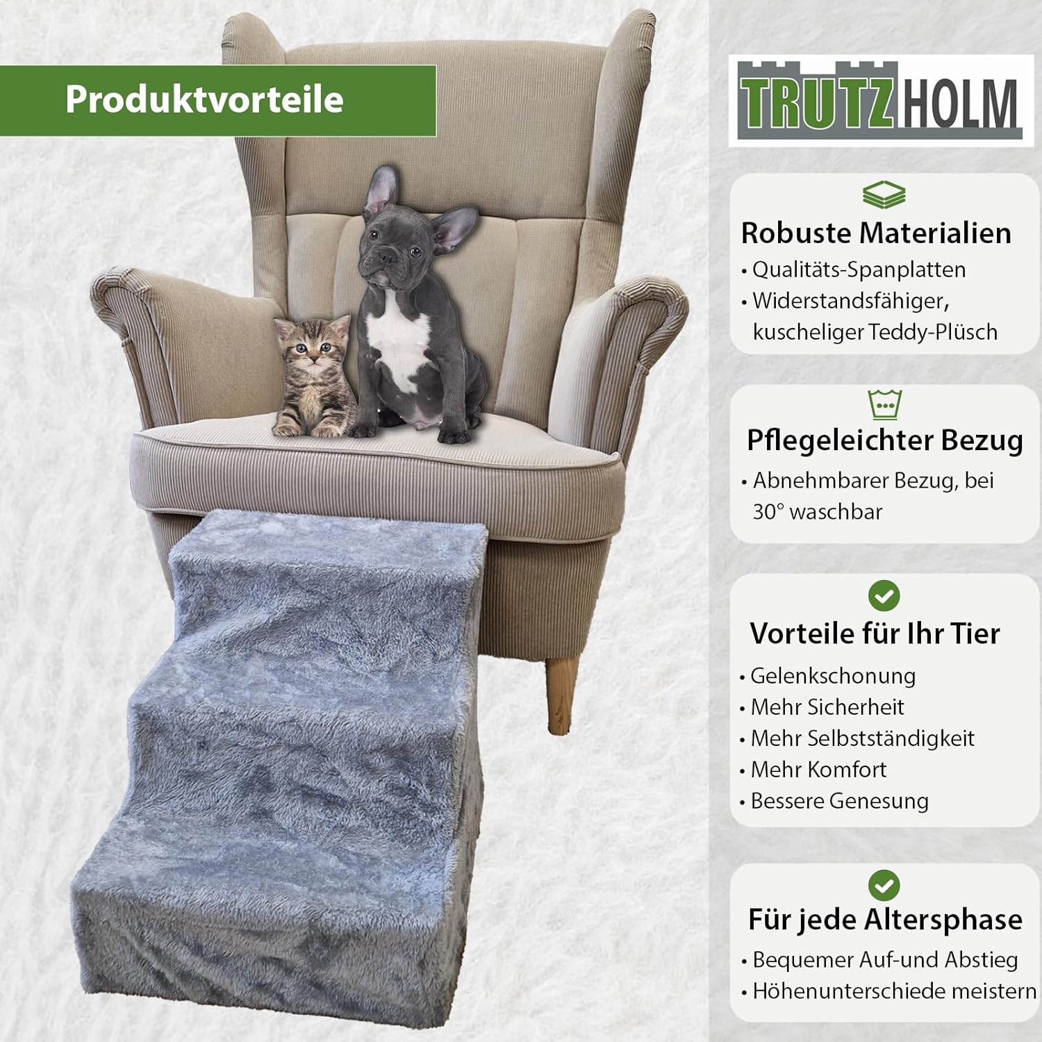TRUTZHOLM Hundetreppe 3 Stufen Hunderampe für Bett und Sofa, Abnehmbarer, waschbarer Plüschbezug in
