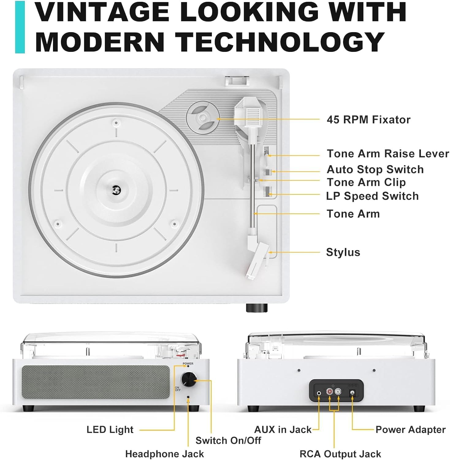 - ✅【Spezieller Prozess】 Die Plattenspielerbasis ist mit einer Feder ausgestattet, um Stossdämpfung zu gewährleisten und die Klangqualität zu verbessern.