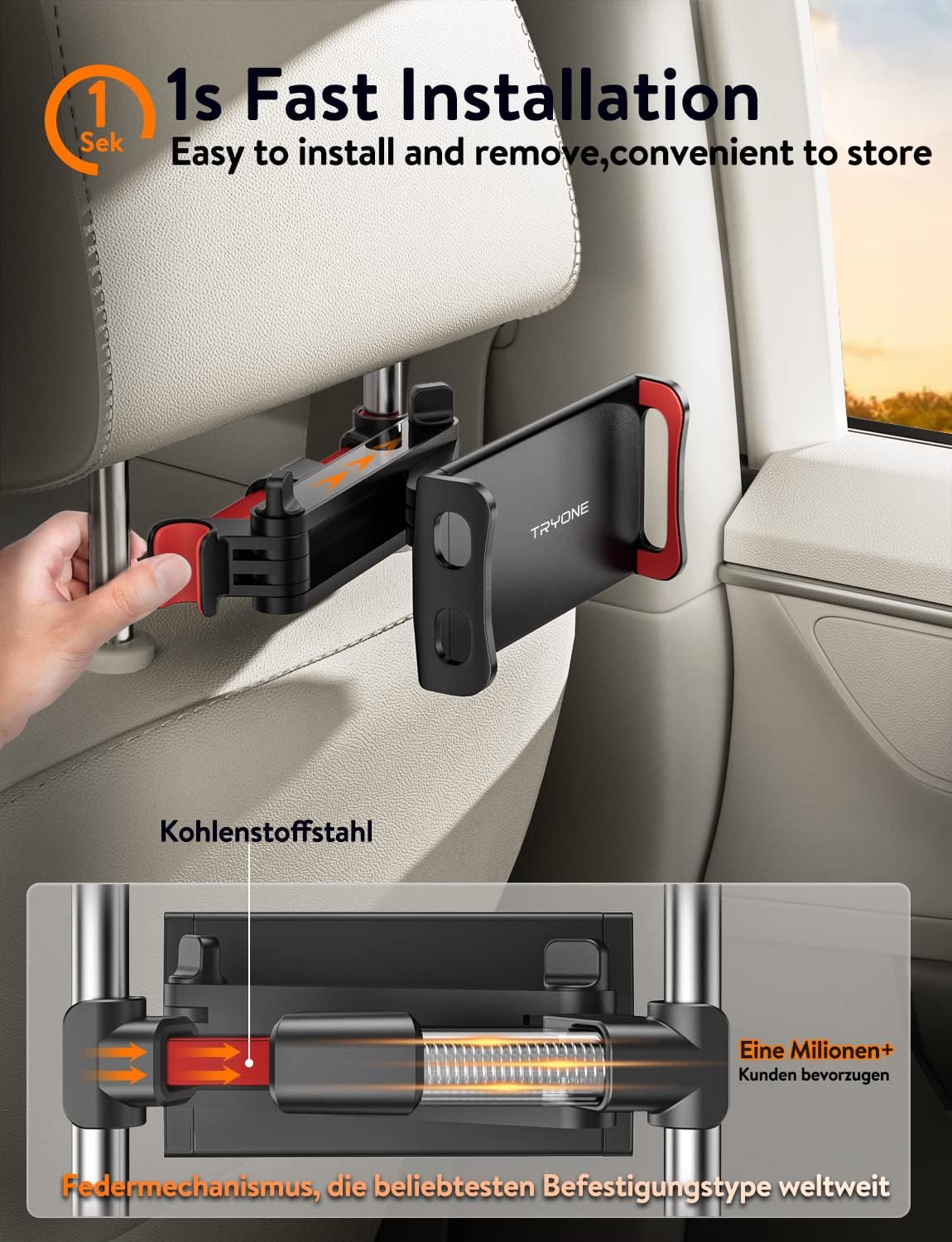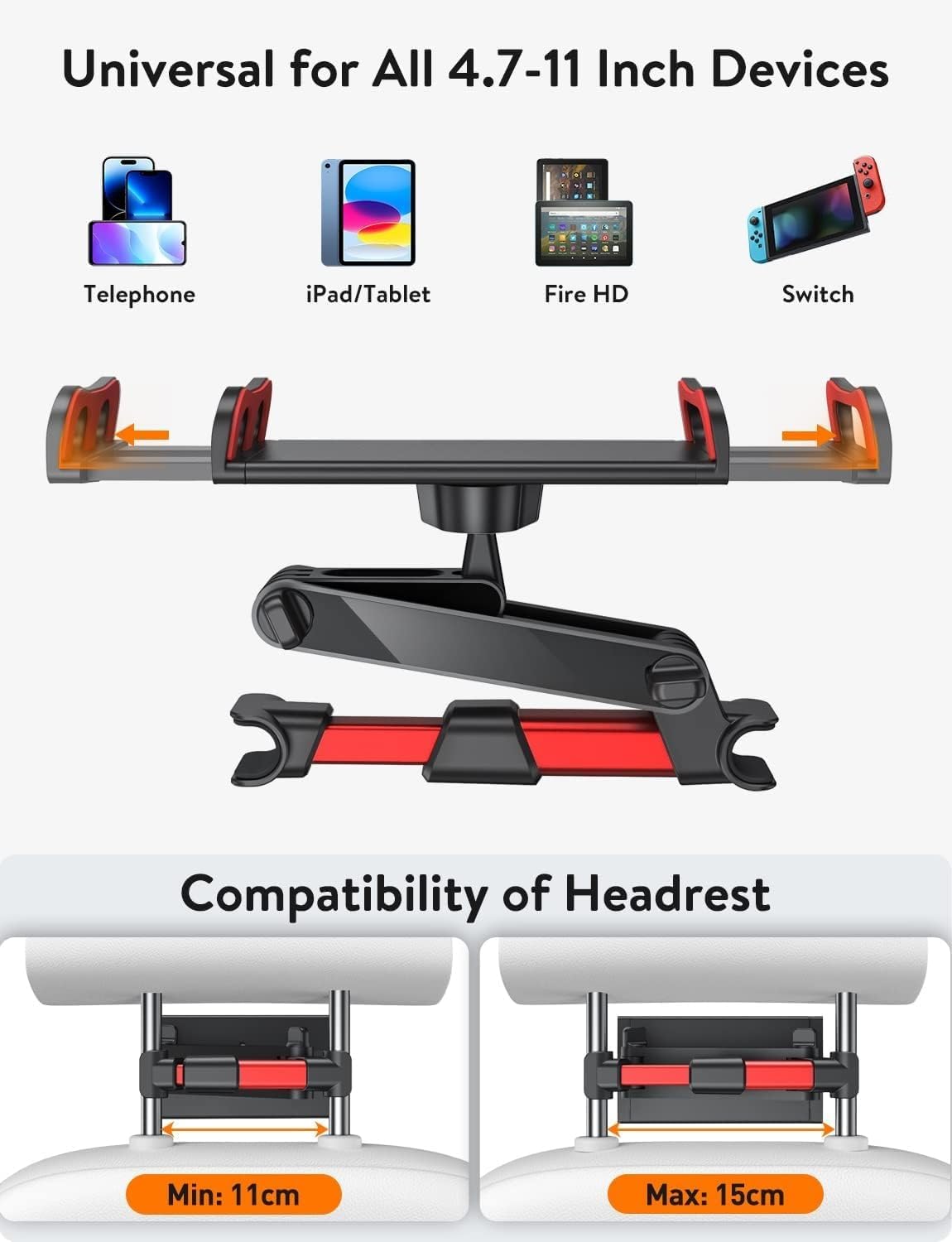 - 【Kompatibilität mit den Kopfstützen】 Der Tablethalter ist nur für Auto-Kopfstützen mit zwei Metallstützen geeignet, die einen Abstand von 12,5cm bis 15cm vorweisen können.(Stellen Sie vor dem Kauf sicher, dass die Halterung mit Ihrem Auto