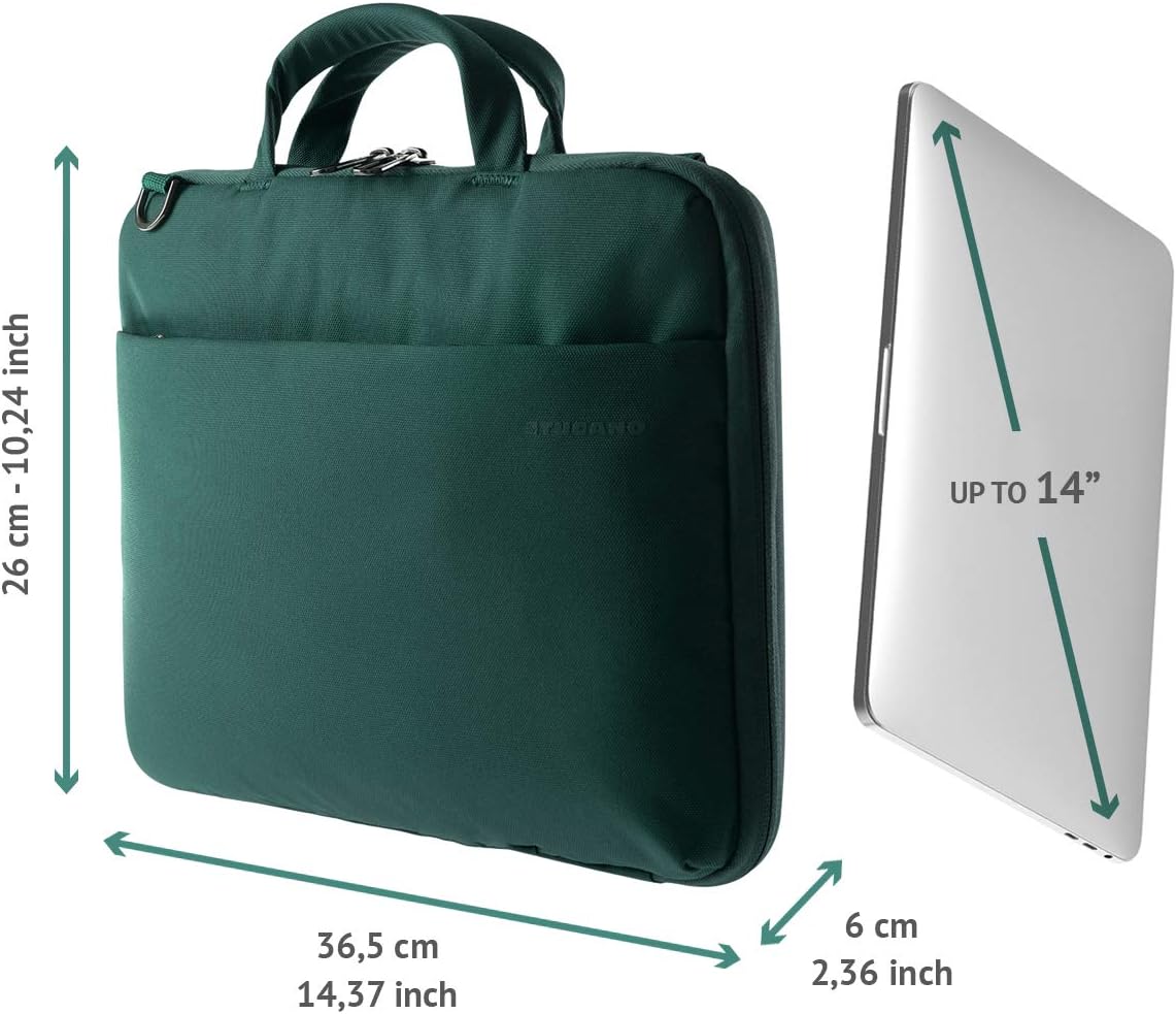 - Auf der Vorderseite ist ein Reissverschlussfach mit praktischen Organisationsfächern für Smartphone, Kabel, Stylus Akkus, Karten und vieles mehr