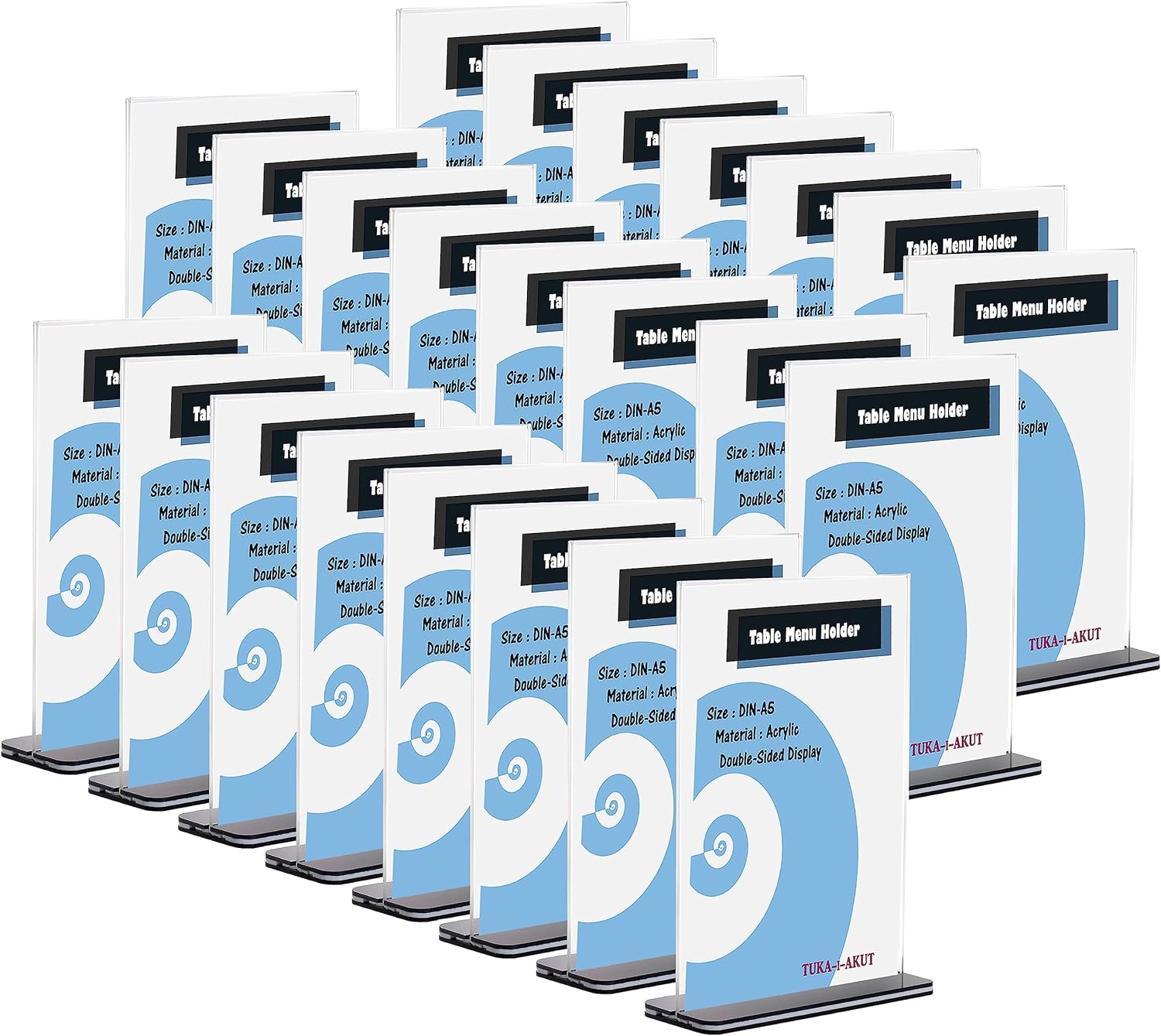 - [ 20er Pack ] A5 Acryl beidseitiger Tischaufsteller mit Abnehmbarem Basis, A5 Hochformat, T-Form Klarsicht Werbeaufsteller. Professionelle Lösung für das Präsentieren von Informationen wie Werbeaktionen, Sonderangeboten, Hinweise, Kundeninformationen,
