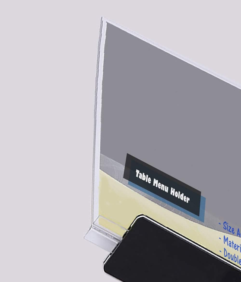 - [ Professionelles Design ] Der Tischaufsteller bietet Platz für 2 Seiten oder eine beidseitig bedruckte Einlage (Einschubformat DIN A5 Hoch: Prospekt, Menu, Speisekarte, Schilder usw.) zur doppelseitigen Präsentation. Ein optimaler Blick von beiden