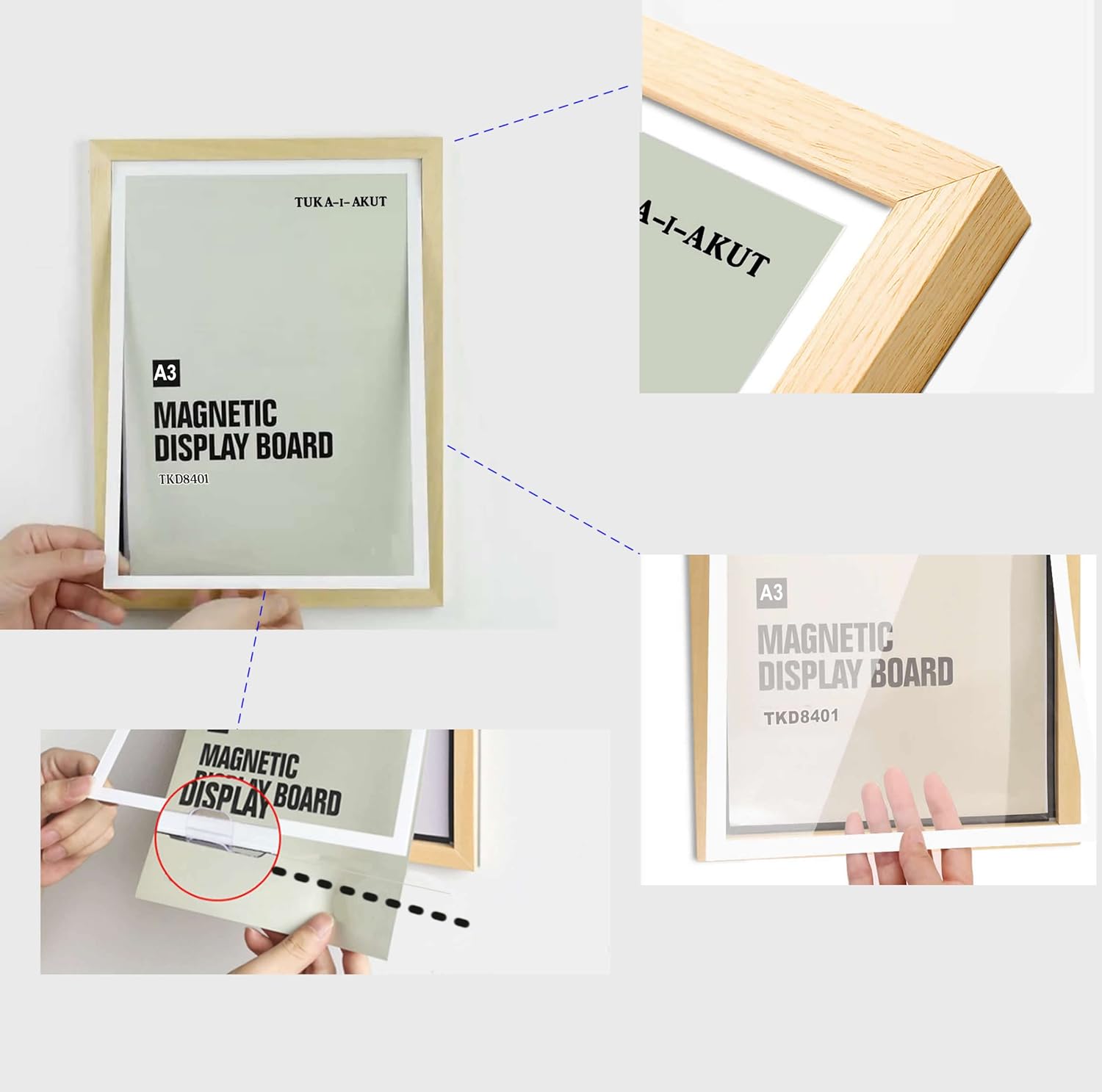 - [ 2er Set ] DIN-A3 Holz Info-Rahmen mit Glasklare Acryl Frontfolie und aufklappbarem Magnetrahmen, für professionelle flexible Präsentation und Schnelles Wechseln von Dokumenten, Aushängen, Bilder, Kunst, Poster, Informationen, Werbung, Angeboten,