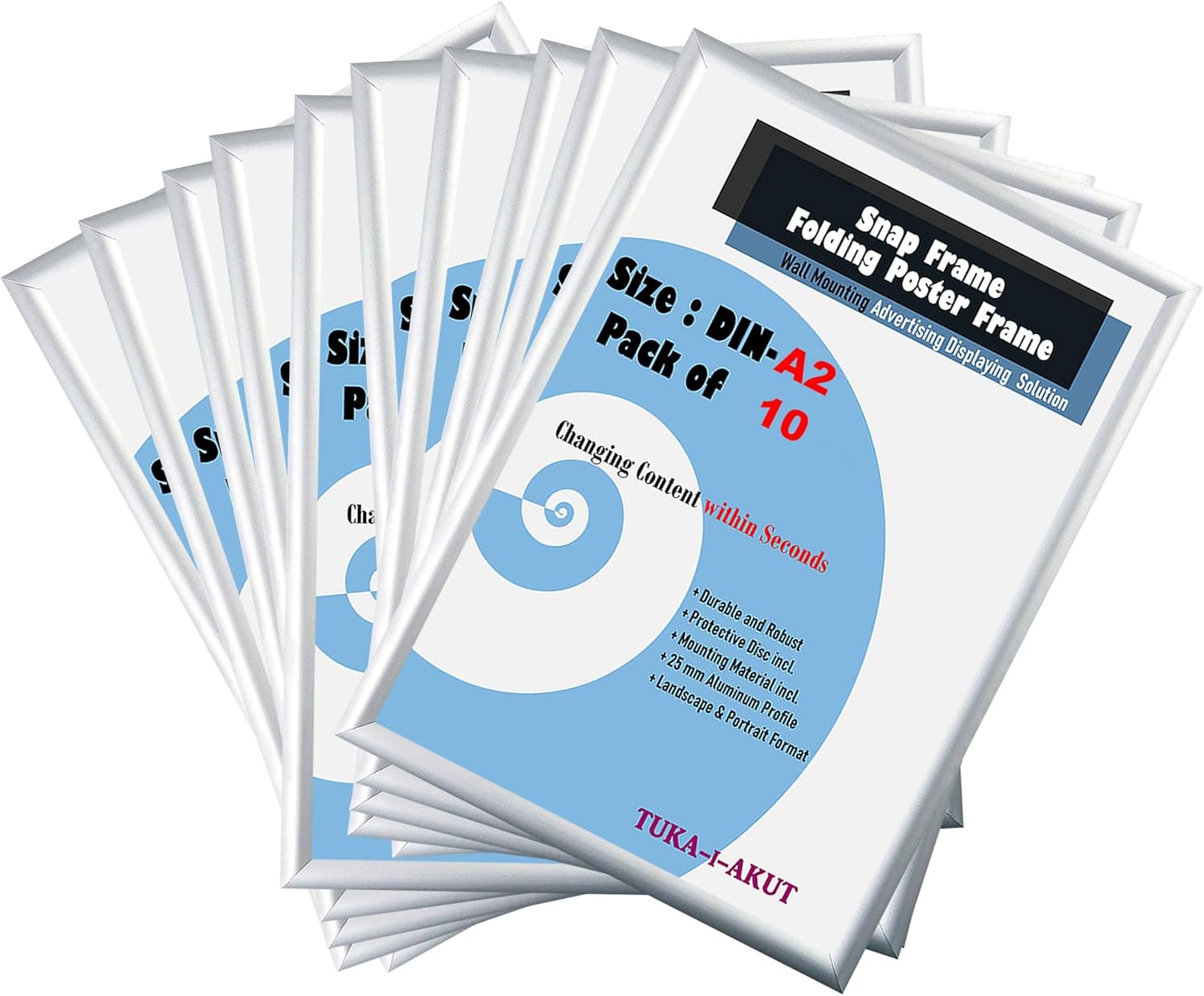 - [ 10er Pack | Plakatrahmen DIN A2 Postermass ] Klapprahmen mit stabilem Alurahmen und klarer Sichtfenster : klassisches und elegantes design, flexible als Quer- oder Hoch-Format. Ideal für stilvolle Präsentation Ihren Displays, Poster, Fotos, Bilder,