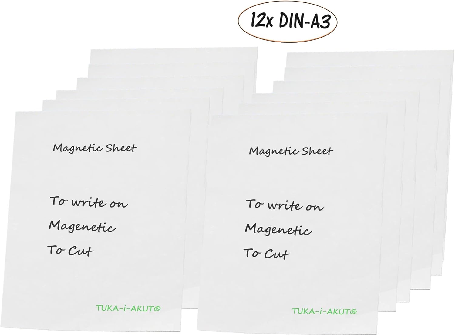 - [ 12er Set ] Flexible Magnetfolie magnetische Etikett A3 Plakat zum Beschriften und Zuschneiden. Geeignet für eine Vielzahl von Anwendungen, z.B. für Erstellung der magnetischen Etiketten, Kühlschrankmagnet Notizen, Werbe Display, Fahrzeug