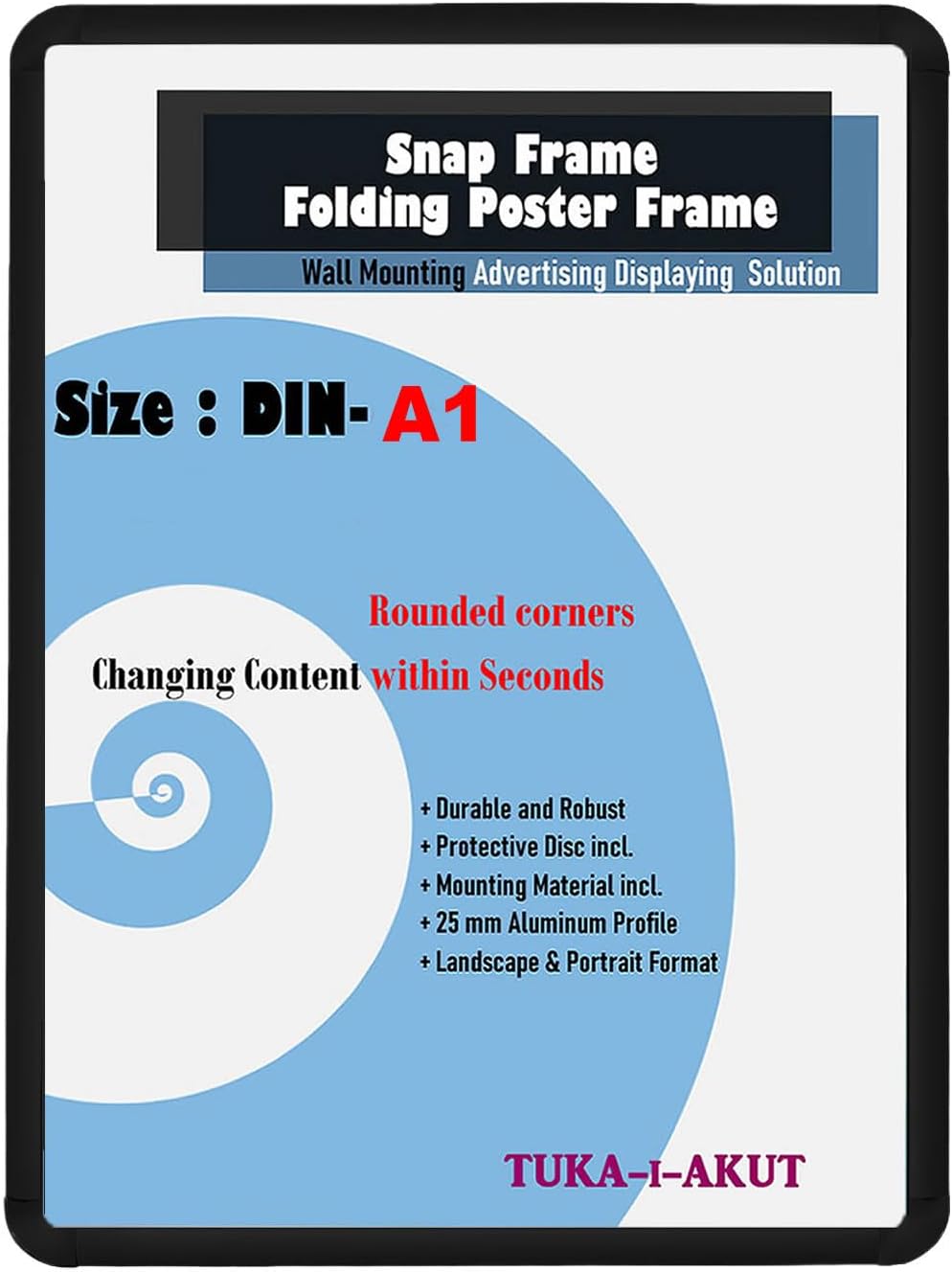 - [ A1 Quer- und Hoch-Format Verwendbar ] TUKA-i-AKUT Plakatrahmen Wechselrahmen sind geeignet für Quer- und Hoch Format: geeigent für Schild / Papiereinlagen Format A1 in Grösse von 594mm × 841mm. TUKA-i-AKUT Klapprahmen sind verfügbar in
