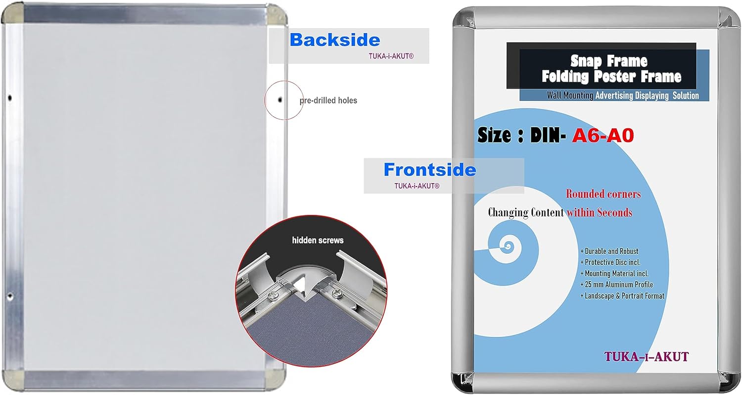 - [ A2 Quer- und Hoch-Format Verwendbar ] TUKA-i-AKUT Plakatrahmen Wechselrahmen sind geeignet für Quer- und Hoch Format: geeigent für Schild / Papiereinlagen Format A2 in Grösse von 420mm × 594mm. TUKA-i-AKUT Klapprahmen sind verfügbar in