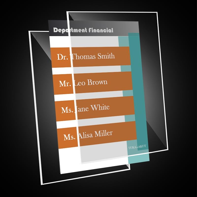 - Das Einfügen und Ersetzen des Etiketts ist einfach: Gestalten und drucken Sie einfach die Schilderfolie entsprechend Ihren Anforderungen. Das Etikett/die Folien lassen sich einfach in das Acrylfenster einführen oder austauschen (durch Lösen der