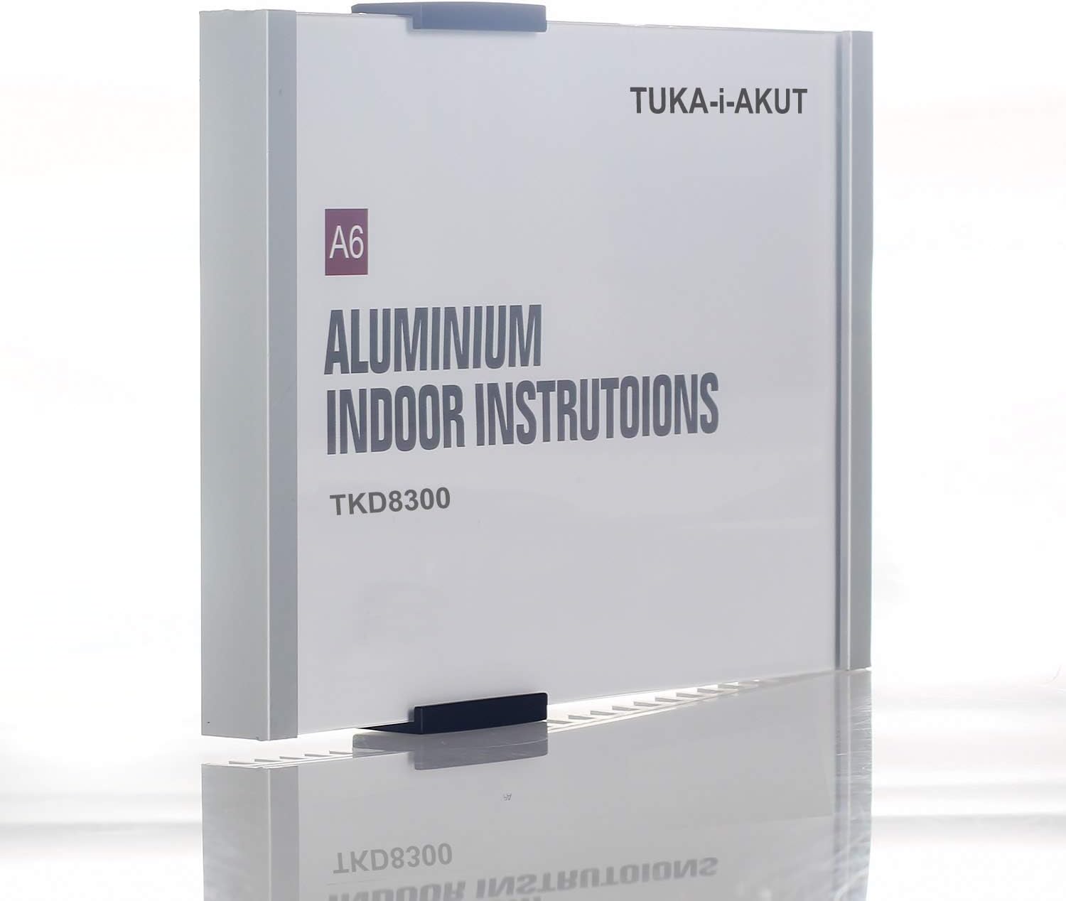 - A6 Schild : geeigent für Schild / Papiereinlagen Format A6 in Grösse von 149mm x 105,5 mm, individuell selbst bechriften / bedrucken, und einstecken. TUKA-i-AKUT Firmenschilder Info Schilder sind verfügbar in verschiedenen Grössen und Typen.