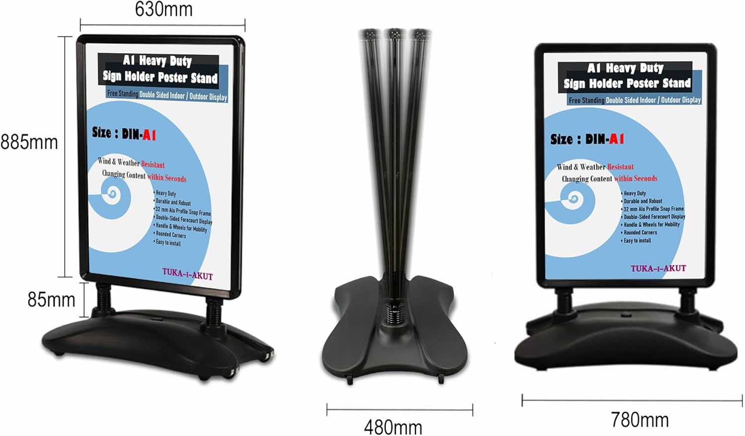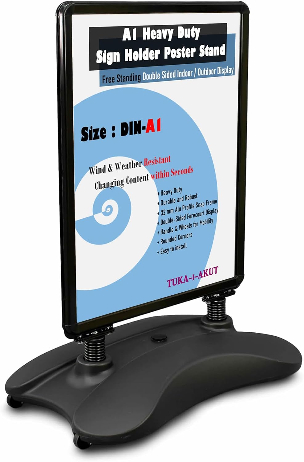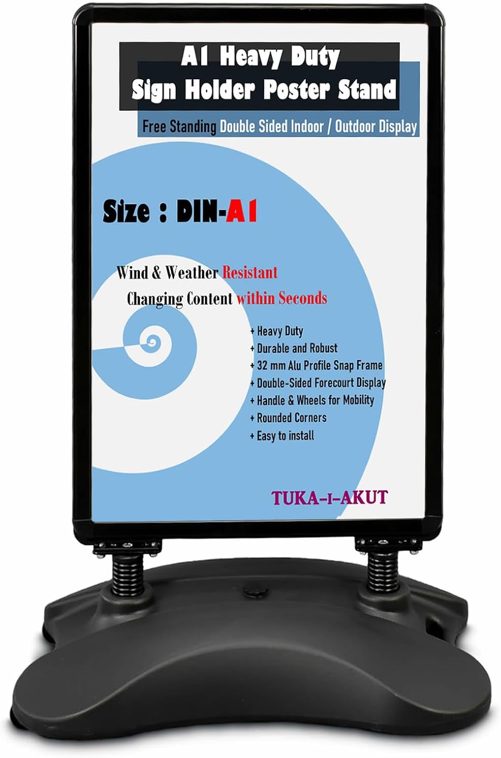 - [ A1 Kundenstopper ] TUKA-i-AKUT A1 doppelseitiger Plakatständer Werbeaufsteller mobiles Design, stabil für sicheren Stand im Innen- und Aussenbereich / Outdoor : ihre robuste und flexible Lösung für die stilvolle Präsentation Ihrer Speisekarten,