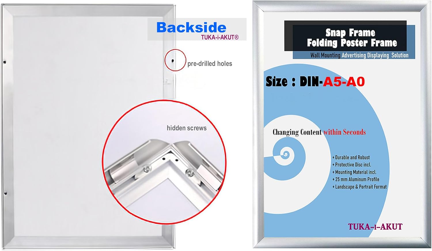 TUKA-i-AKUT Aluminium Klapprahmen DIN A2, 25 mm Profil Plakatrahmen Wechselrahmen Poster Rahmen Bild
