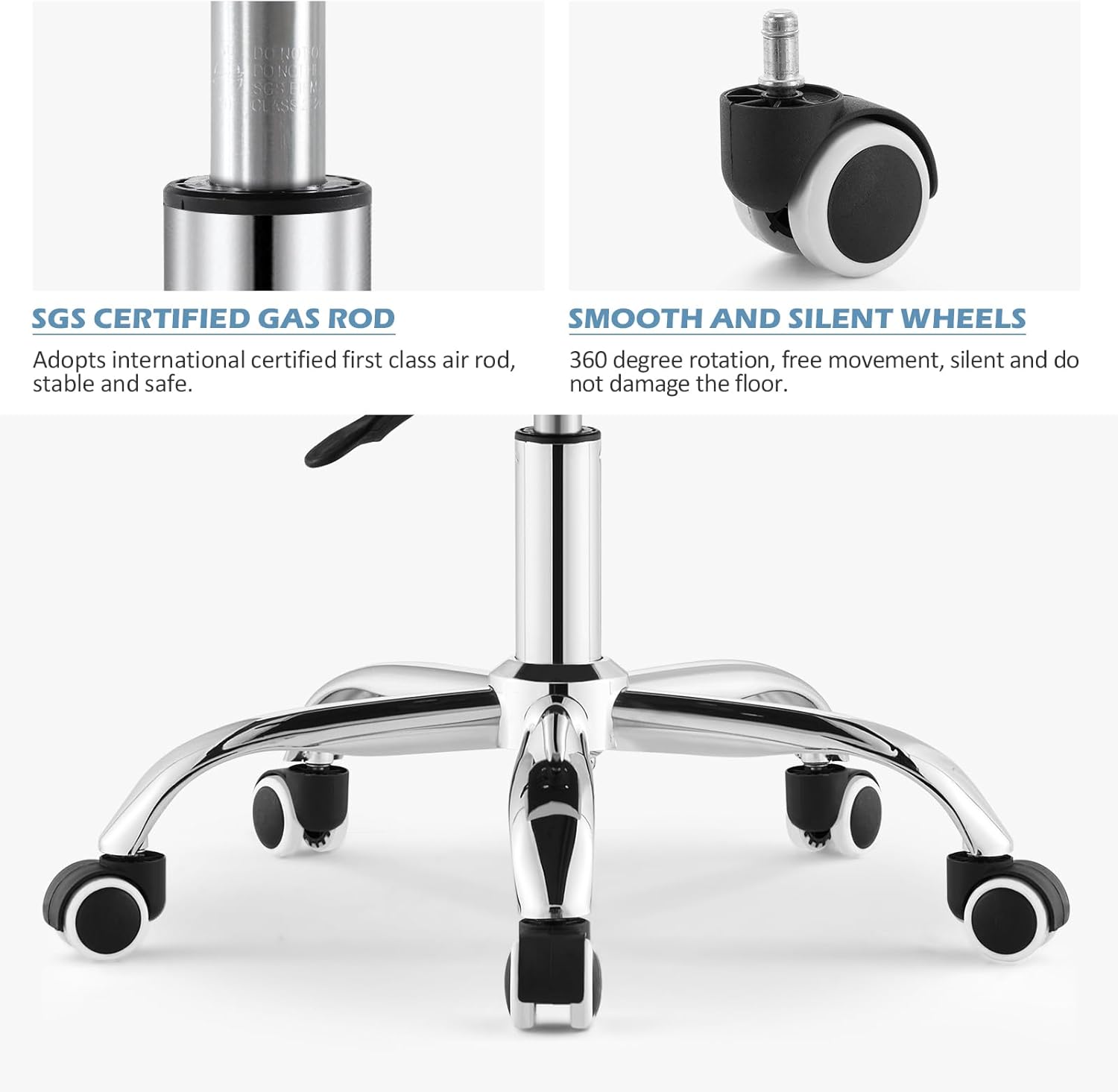 • 【Ein strukturell stabiler Computerstuhl】Das robuste und stabile sternförmige Metallgestell stabilisiert die Basis und kann ein Gewicht von 150 kg tragen. Gepaart mit einem 360 ° drehbaren Rad, um eine reibungslose und schnelle Bewegung zu