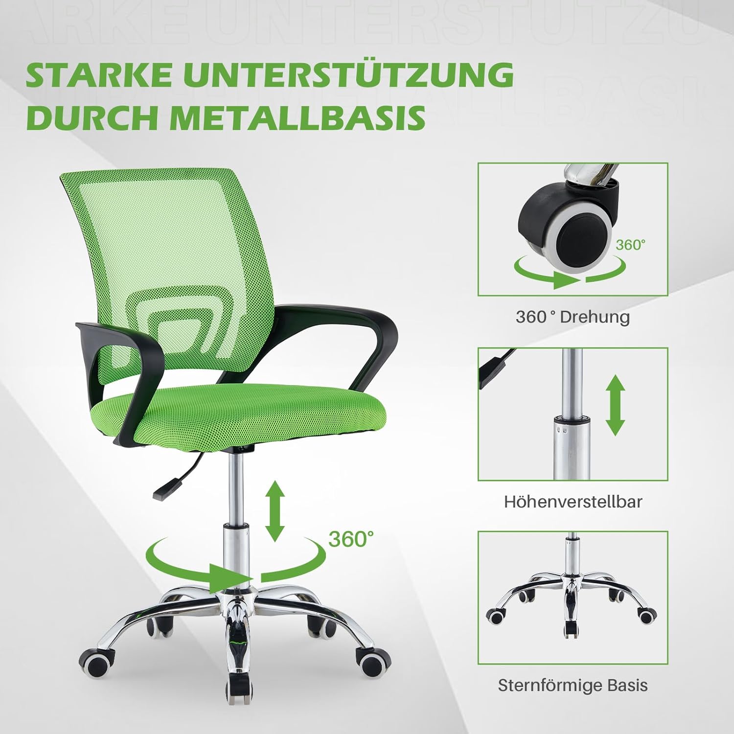- Atmungsaktives Design mit mittlerer Rückenlehne:Mit dicht gestrickter Netz-Rückenlehne ermöglicht dieser Bürostuhl aus Netzstoff eine bessere Luftzirkulation, beschleunigt die Wärme- und Feuchtigkeitsableitung. Das Design mit mittlerer