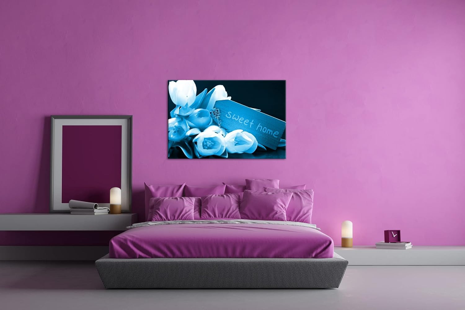 deyoli Tulpen Sweet Home Format: 100x70 Effekt: Monocrome Blau als Leinwand, Motiv fertig gerahmt au