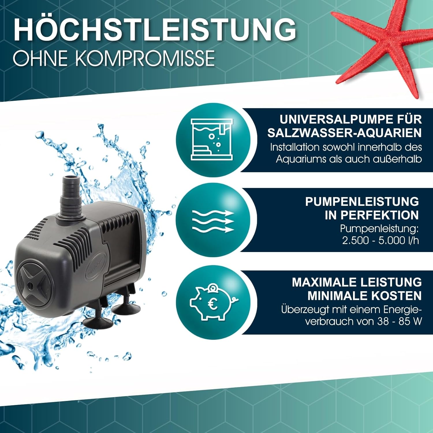 - Hat eine Pumpenleistung von 2.500 - 5.000l/h