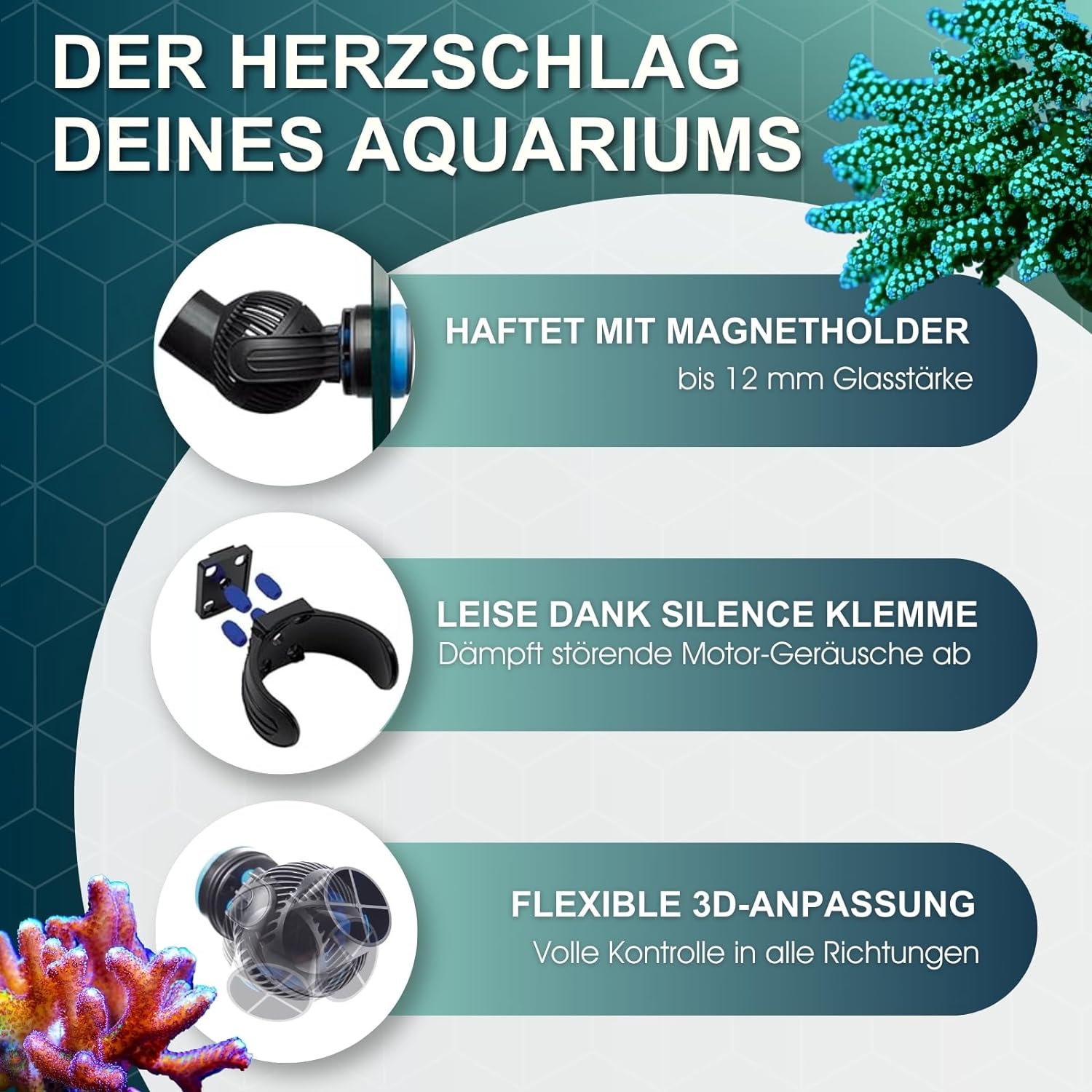 - 3D EINSTELLBARE WASSERSTRÖMUNG - Die kompakte Propeller-Pumpe erzeugt eine 3D einstellbare Wasserströmung & damit eine optimale Wasserzirkulation - alles mit minimaler Motorwärme. Zudem verfügt die Aquarienpumpe über ein Schutzthermostat.