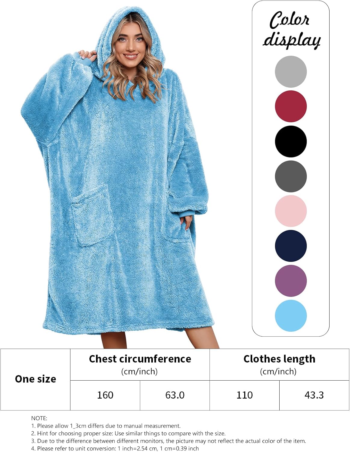 - 【Übergrosser Hoodie】 Unser Sweatshirt besteht aus 100% Polyesterfaser, ist weich und warm, ein bequemer Kapuzendecke, der Sie von Kopf bis Fuss warm hält. Dieser tragbare Deckenpullover mit riesiger Kapuze ermöglicht Ihnen, sich zu bewegen. Es