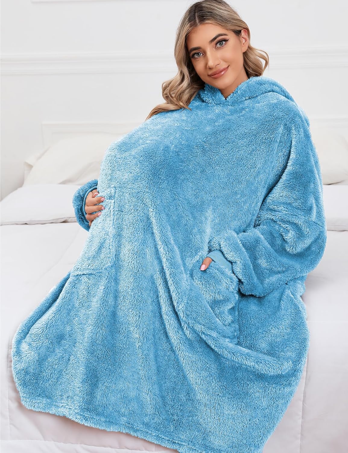 - 【Ultraweiche & warme flauschige hoodie damen herren】Der übergrosse Hoodie mit langen Ärmeln ist extrem gross, man kann Arme und Beine in das weiche, flauschige Fleece ziehen und bedeckt dich auf der Couch komplett gut, was dich beim Arbeiten an