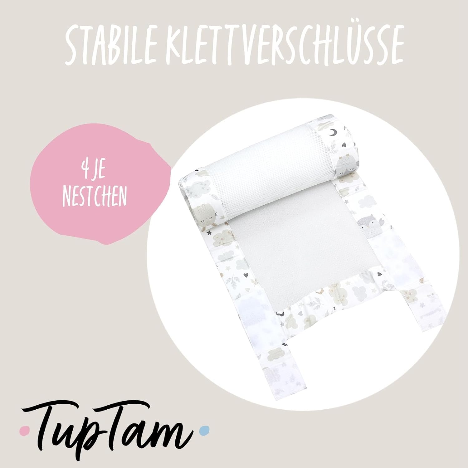 • KINDERLEICHT ZU BEFESTIGEN - Dank der Klettverschlüsse kann das Nestschen schnell und mühelos am Kinderbett angebracht werden. Jedes Netschen hat 4 Klettverschlusse.